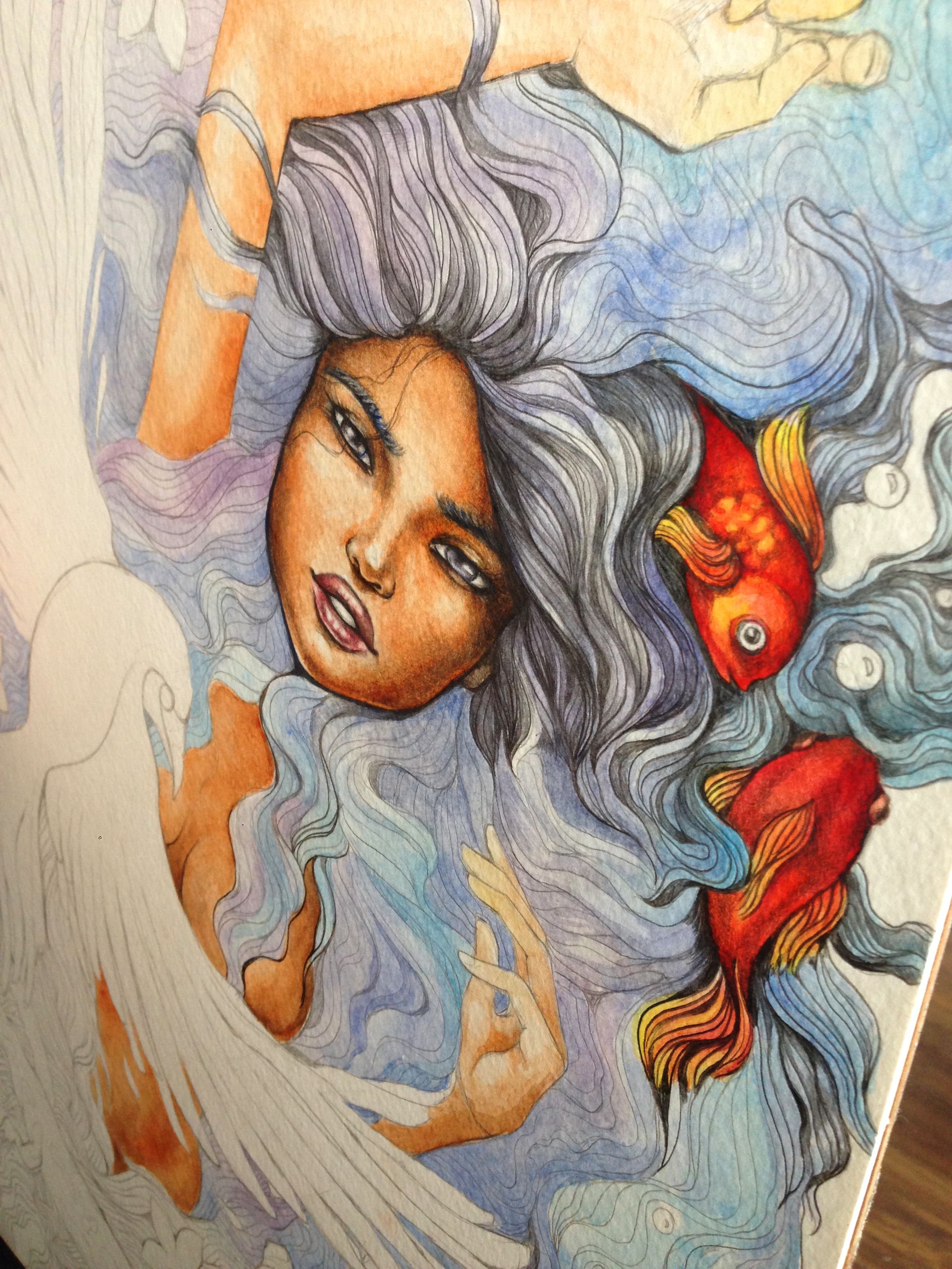 Combina retrato en acuarela con elementos de la vida natural e imprime tu arte en distintos objetos