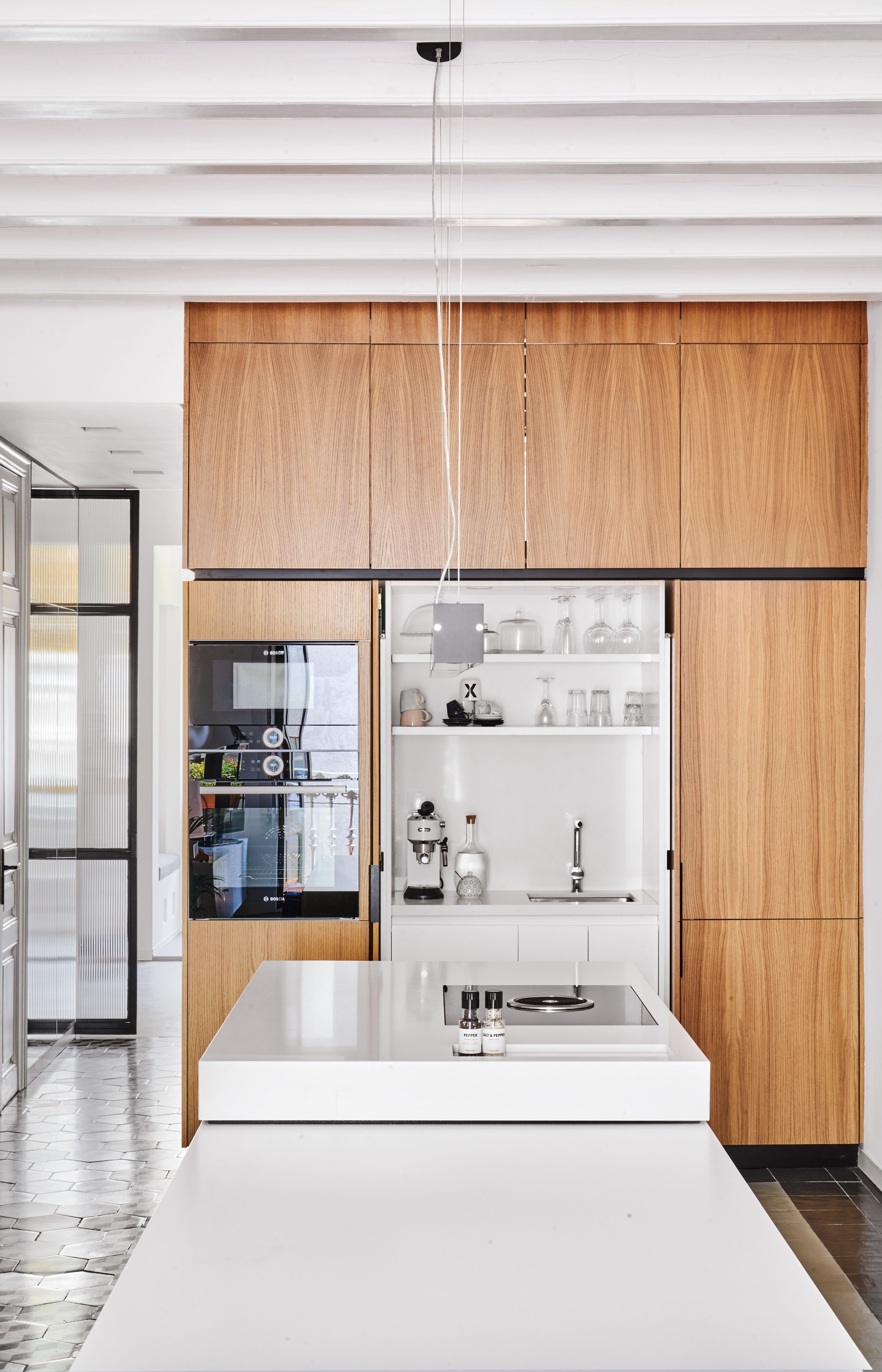 Concentrar la intervención en un único volumen en el interior de la planta, ha permitido liberar completamente el perímetro y crear un espacio grande y diáfano, flexible y adecuado para las necesidades actuales de la vivienda