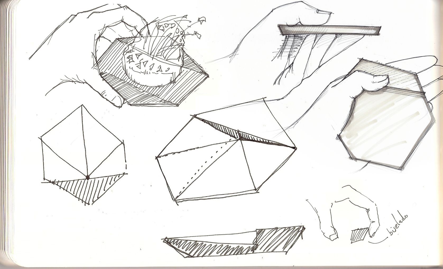 A partir de ahí surgen varias ideas en co-creación pero nos decidimos en usar una forma hexagonal, ya que el hexágono es una de las formas que mejor aprovechan el espacio y por otro lado tienen carácter diferenciado frente a una forma ovalada o cuadrada.