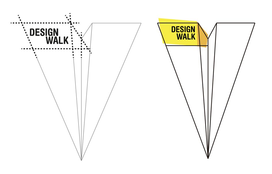 Diseño de un sitema de señalética para el evento "Design Walk Logroño 2013". El diseño de todos sus elementos se basa en las formas de aviones de papel, en referencia a el papel como elemento básico de cualquier proceso creativo.