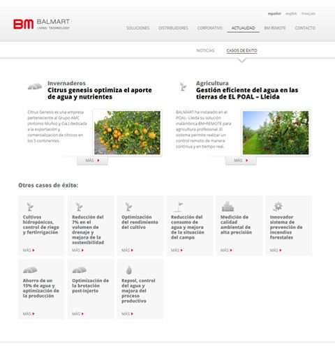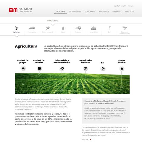 Web corporativa realizada a medida para Balmart, empresa especializa en el control inteligente del medio ambiente mediante el diseño de software y fabricación de equipos electrónicos.