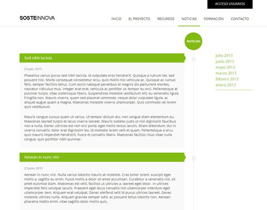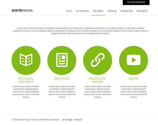 Portal web del proyecto de innovación educativa Sosteinnova que tiene como objetivo principal la creación de un espacio web informativo, interactivo y audiovisual. El alumno debe realizar una serie de ejercicios on-line y tendrá que superar las pruebas con un 65% para acceder al resto de ejercicios.