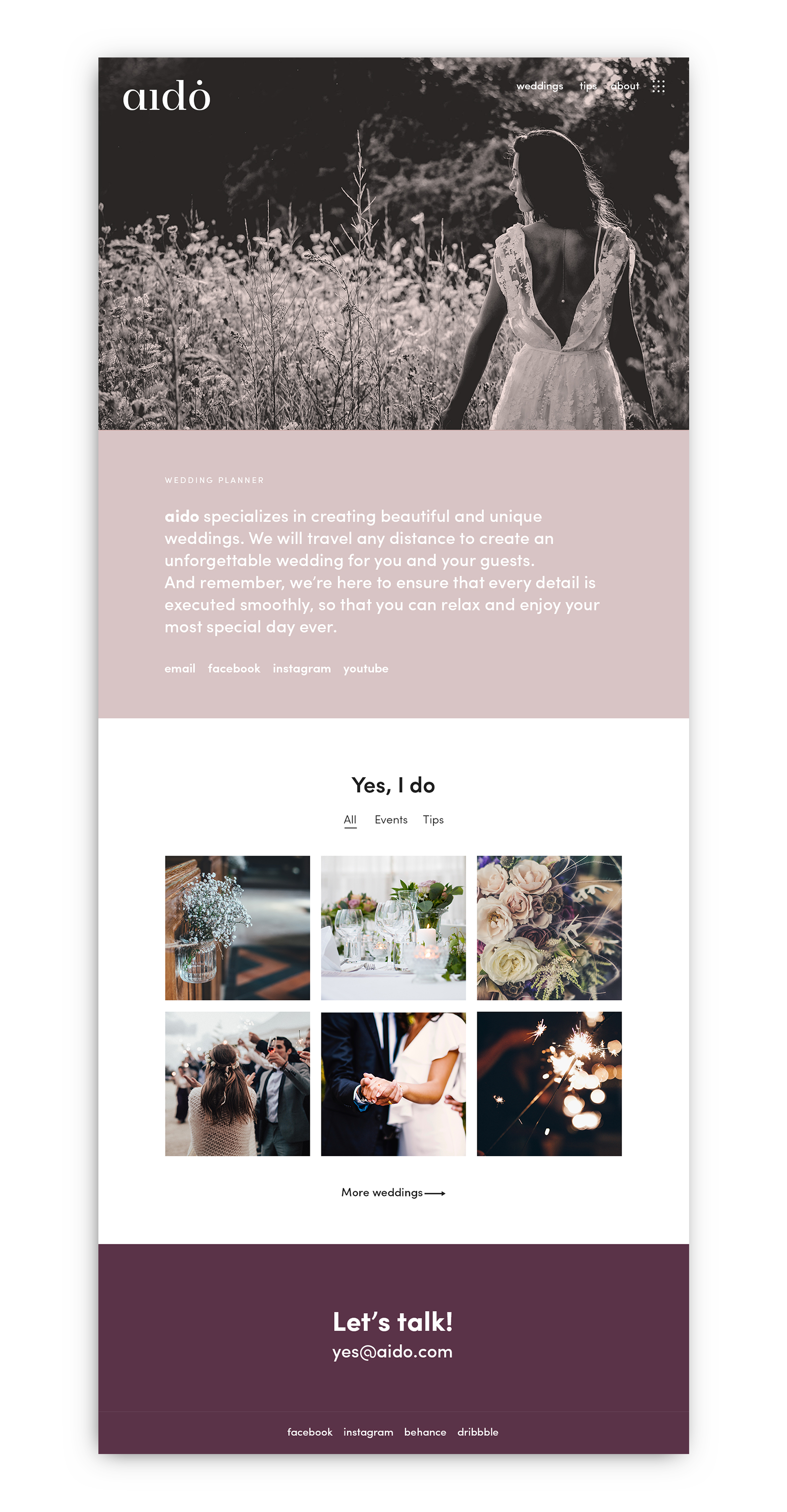aido is a wedding and event planning consultancy. Its owner creates sophisticated celebrations that will make you relish this once-in-a-lifetime experience.