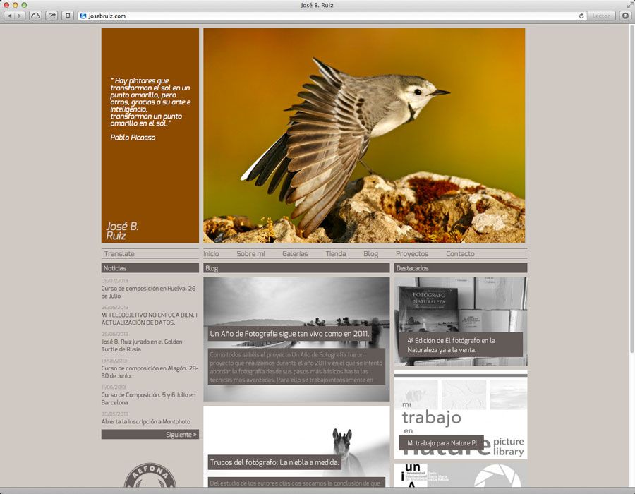 Web de José B. Ruiz, diseñada a modo de portal de noticias, galerías y artículos para este prolífico y galardonado internacionalmente escritor y fotógrafo de naturaleza.