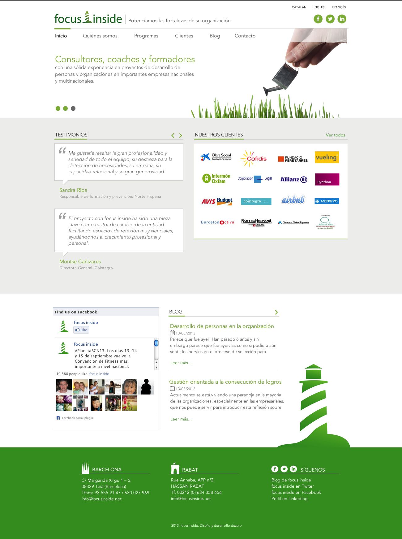Diseño web para focusinside: Red de consultores, formadores y coaches especialistas en desarrollo de Personas en las Organizaciones.