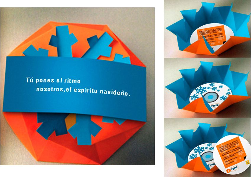 Desarrollo y arte finalizado del mailing navideño del 2008. Envio que consta de un sobre contenedor en forma de copo de nieve en cuyo interior hay un tarjetón felicitando las navidades al cliente y a continuación un cd con villancicos.