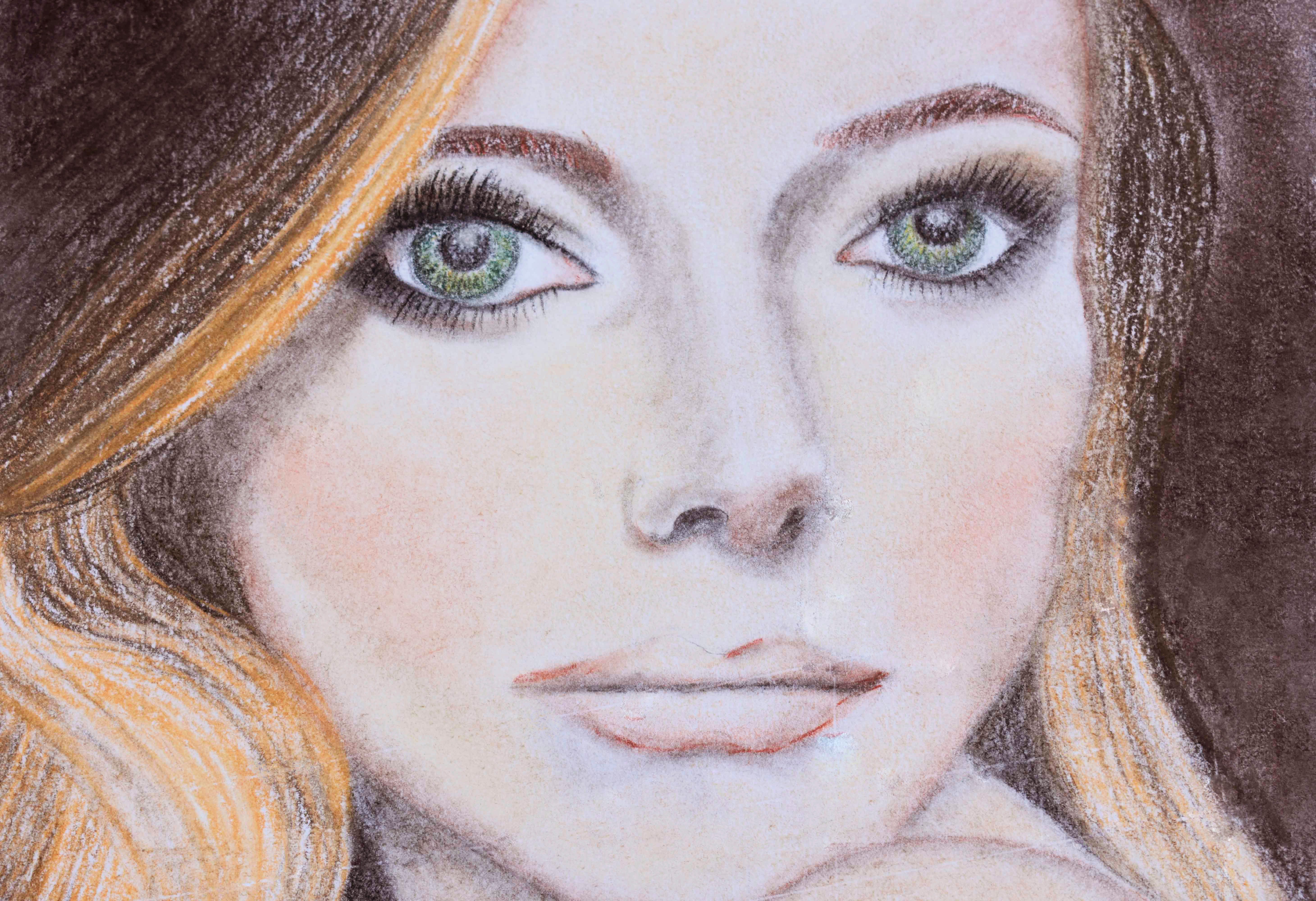 -Color pastel: es una técnica que combina el dibujo con la pintura. Se hizo uso de una técnica lineal para hacer este retrato, la cual consistió en dibujar basándose en el trazo de manera que, para conseguir diferentes valores tonales, desde claros a oscuros, se trazaron finas líneas paralelas a la superposición de líneas cruzadas.(img.1)
