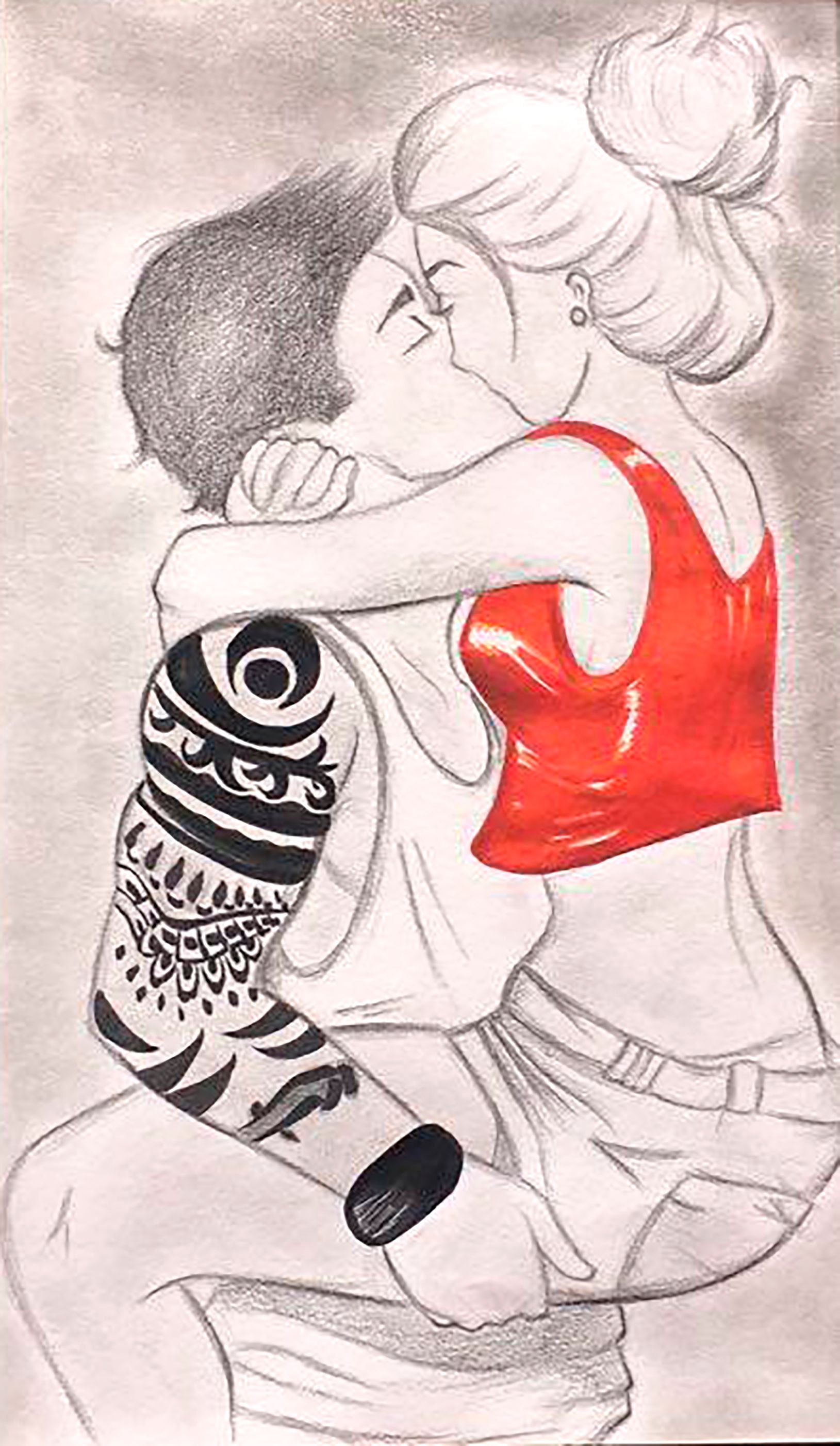 -Lápiz y Marcador Acuarela: fusión de dos técnicas. El lápiz se utilizó para el trazo de líneas finas, agregando sombreados y difuminando para hacer fuertes las líneas, realizando una combinación con plumón acuarela, en el cual se desvancierón dos colores aplicados en lados opuestos con un pincel húmedo creando unos gradientes de color fluidos y brillantes.(img.3)
