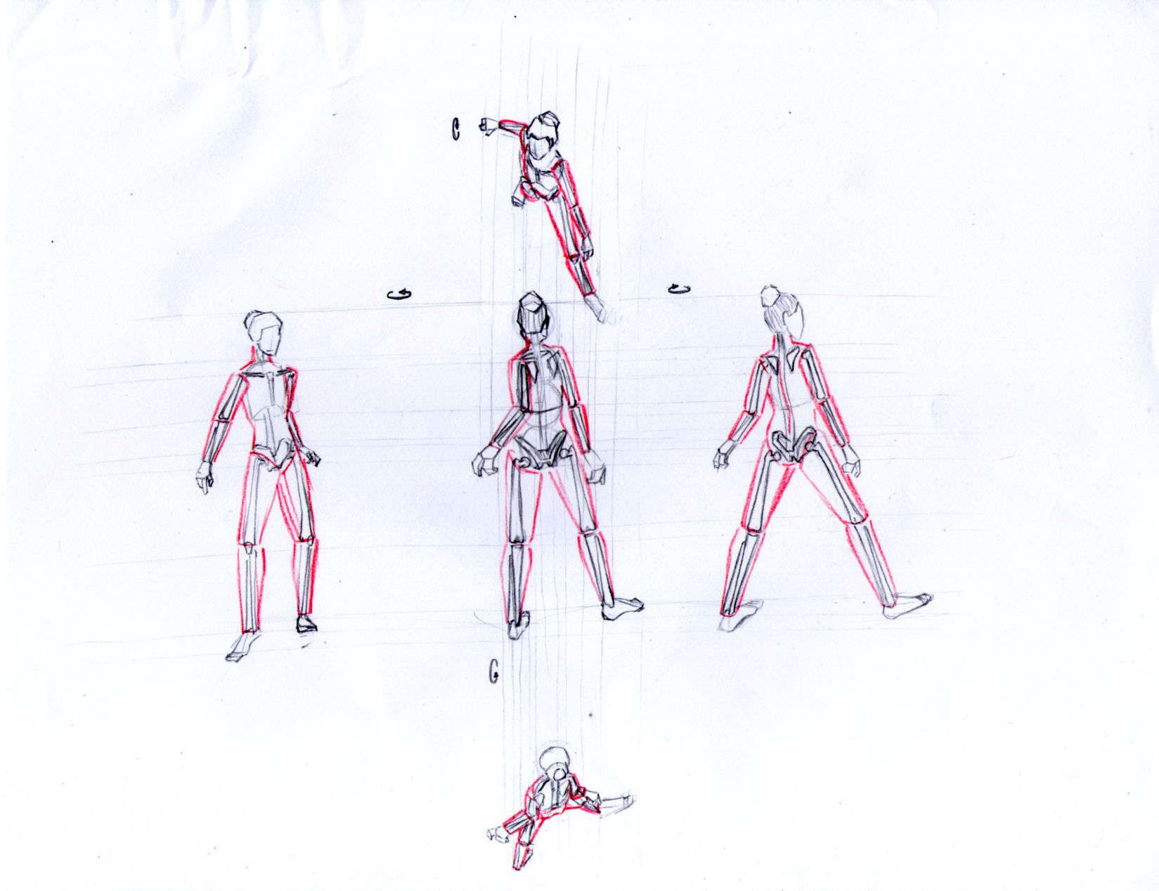 En cuanto al cuerpo, un ejercicio que encontré bastante difícil fue el de las proyecciones, comprender los ángulos adecuados para deducir / interpretar la posición desde otro ángulo es un reto grande, que requiere mucha práctica, aún así es muy gratificante encontrar concordancia entre los dibujos.