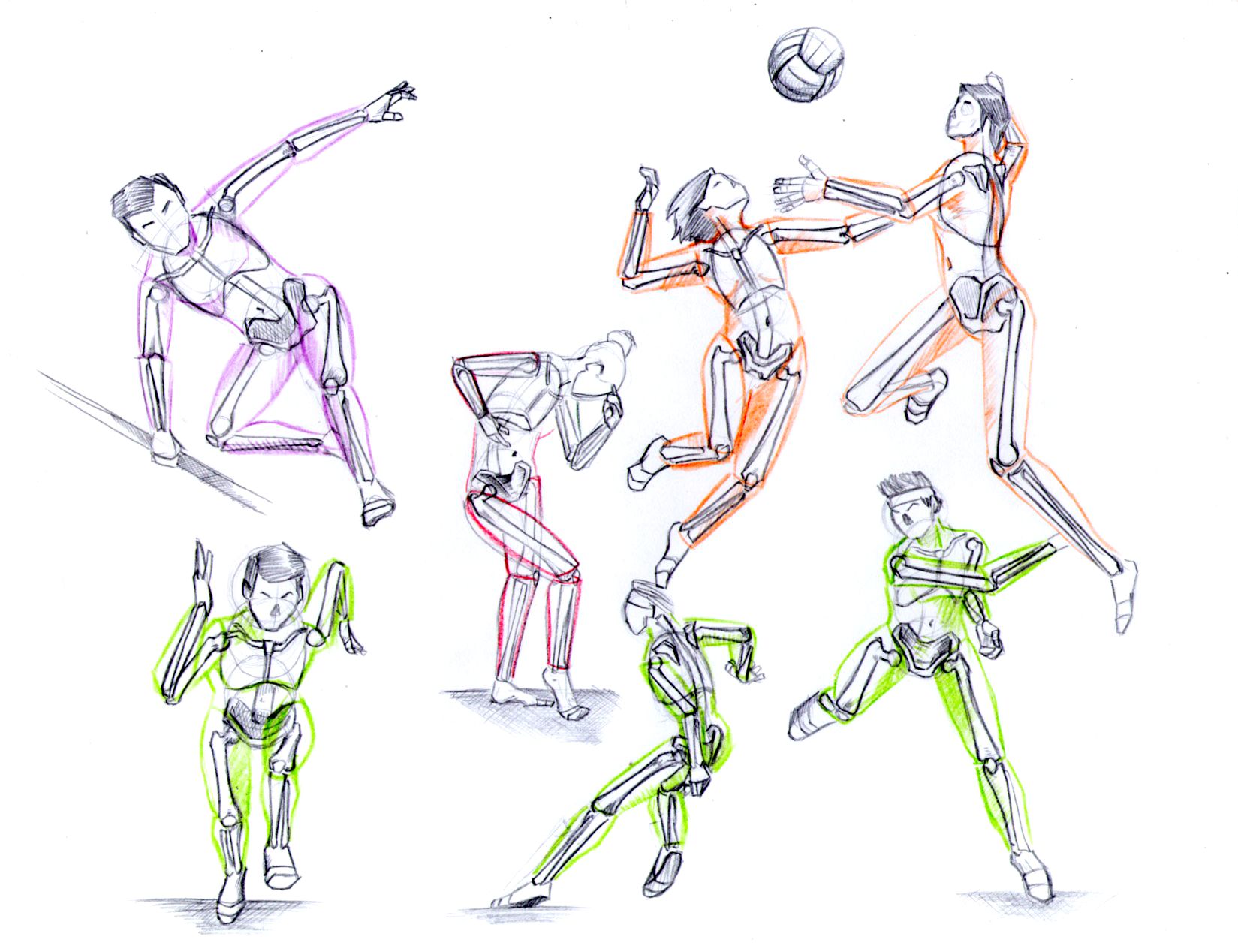 Para lograr poses dinámicas, creo oque no hay mejor ejercicio que buscar fotos de deportes, sea cual sea, todos tienen su propio dinamismo y se prestan para lograr composiciones interesantes, incluso entre fotos no relacionadas, como por ejemplo las de esgrima y, aunque no sea un deporte el baile.