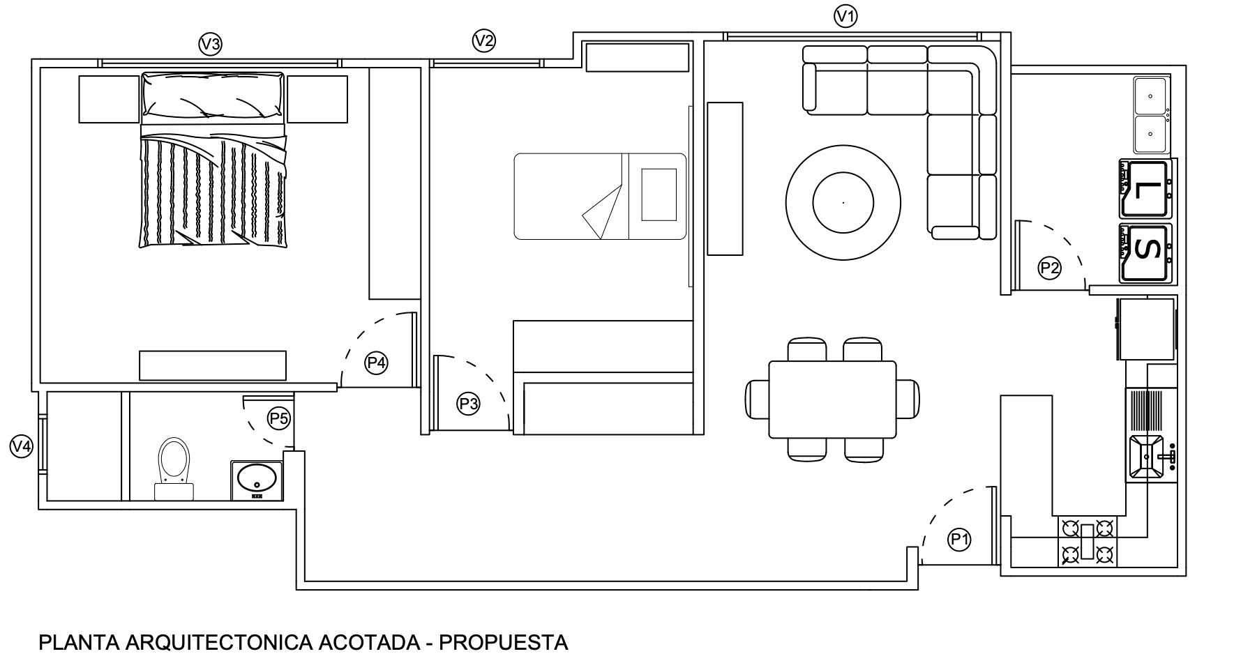 Tal vez nos sorprende que el dormitorio principal tiene casi mayor dimensión que la sala de estar-comedor, pero si es una premisa/requisito del cliente, por qué no?
