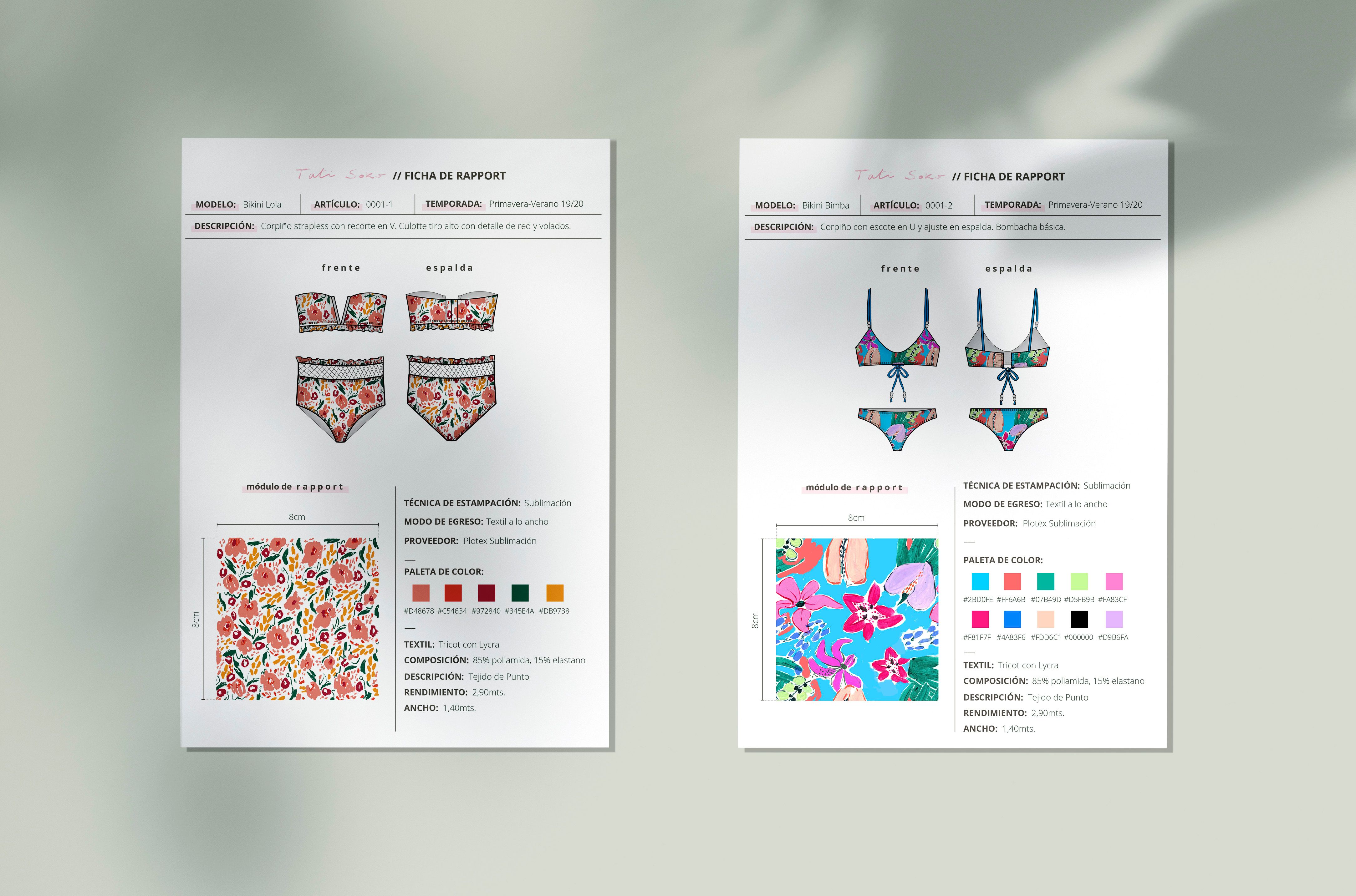 Fichas técnicas digitalizadas en base a los patterns de la artista Tati Soko.