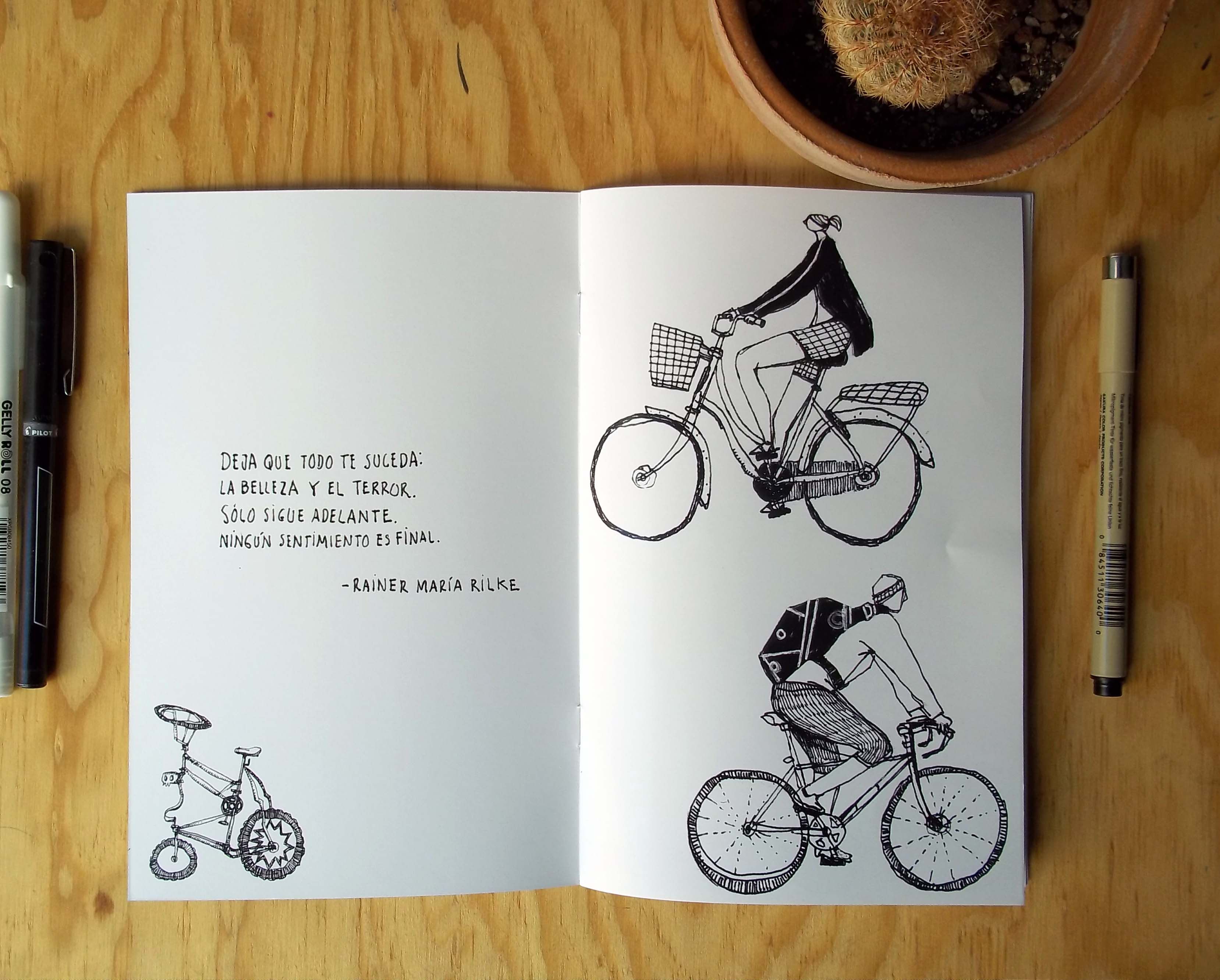 Me enamoré de tu fanzine!!!! Yo amo andar en bici, creo que fue un buen enfoque, y esos dibujos!!!!!
