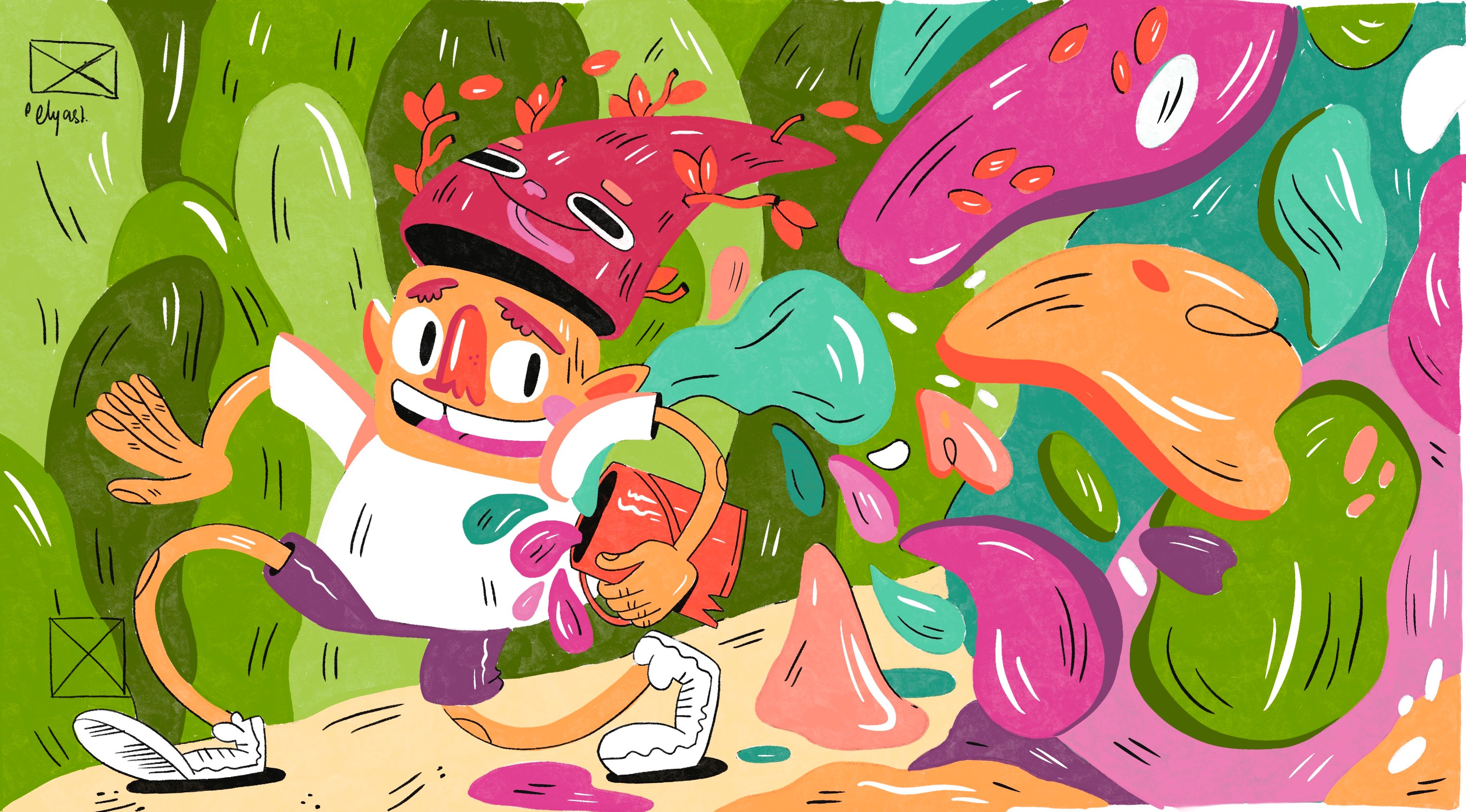 Para mi segunda barda, me pidieron hacer un homenaje a un niño de la colonia en una bodega. El niño siempre esta cuidando a todos y viendo en qué ayudar. Le dicen Chaneque, y en México, los chaneques son pequeños duendes con cara de niño que hacen travesuras. Quise representarlo como lo veía yo, con una actitud muy alegre y siempre corriendo. Cómo estuvo todo el tiempo conmigo, cuando que estuve pintando las calles, quise dibujarlo llevándose una lata de pintura, y dejando detrás de él todo lleno de vida y de color.