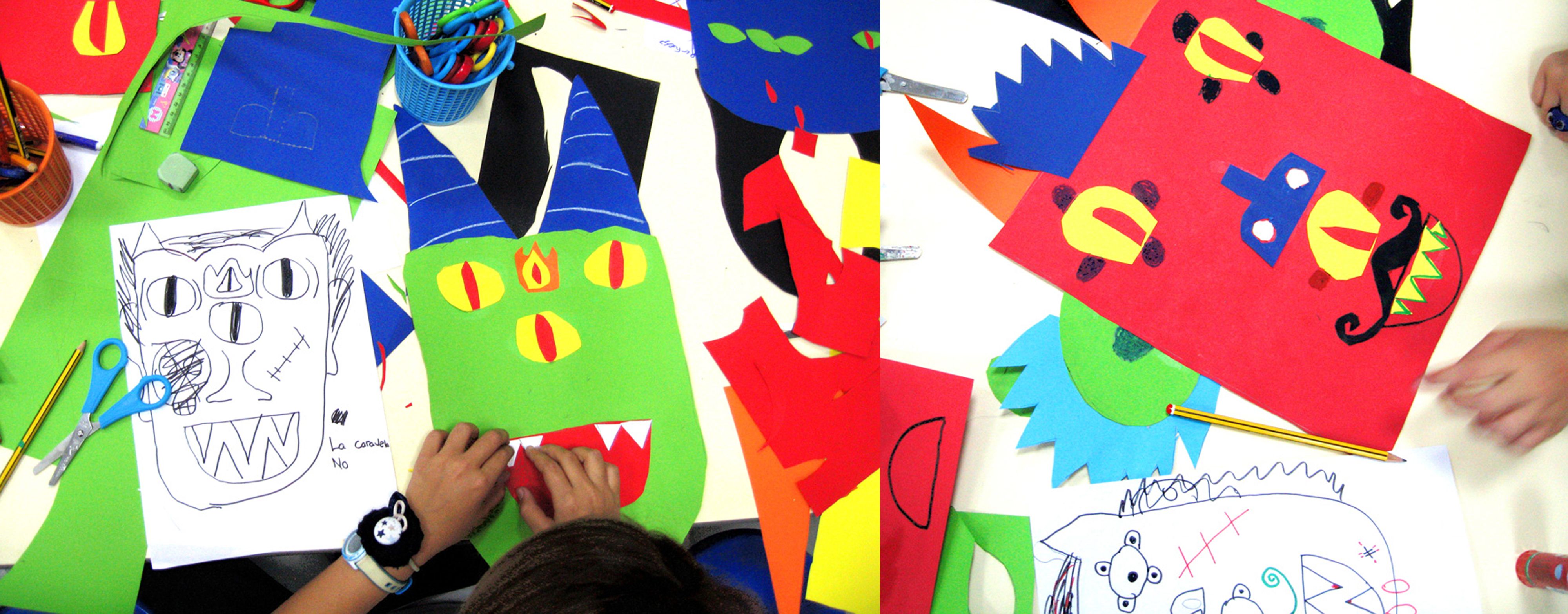 En las clases y talleres que llevo a cabo procuro que haya tiempo para pensar, para idear, para probar y también para evaluar los resultados. A menudo en las actividades creativas y plásticas se espera lograr resultados bonitos y rápidos y pasar a lo siguiente. Es poco común dedicar un espacio a la reflexión antes y después de realizar los ejercicios. Esto nos permite tener más claros los objetivos de la sesión, visualizar la actividad antes de comenzar y trazar planes de acción. También nos permite, al acabar, pensar sobre lo que se ha hecho, observar los trabajos de los demás compañeros y aprender a analizarlos de una forma constructiva.