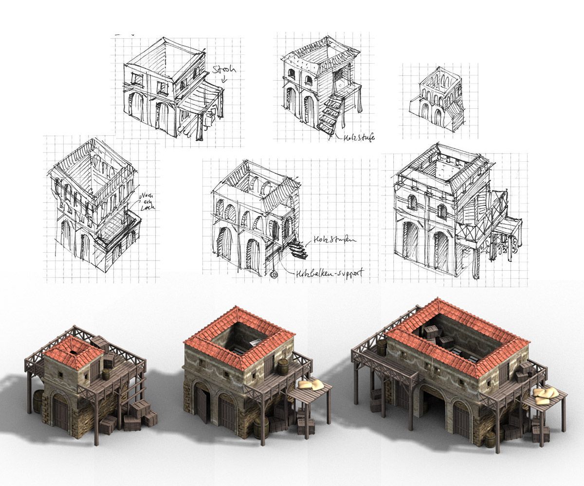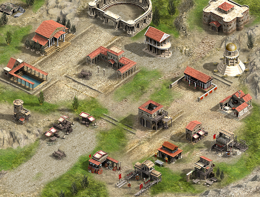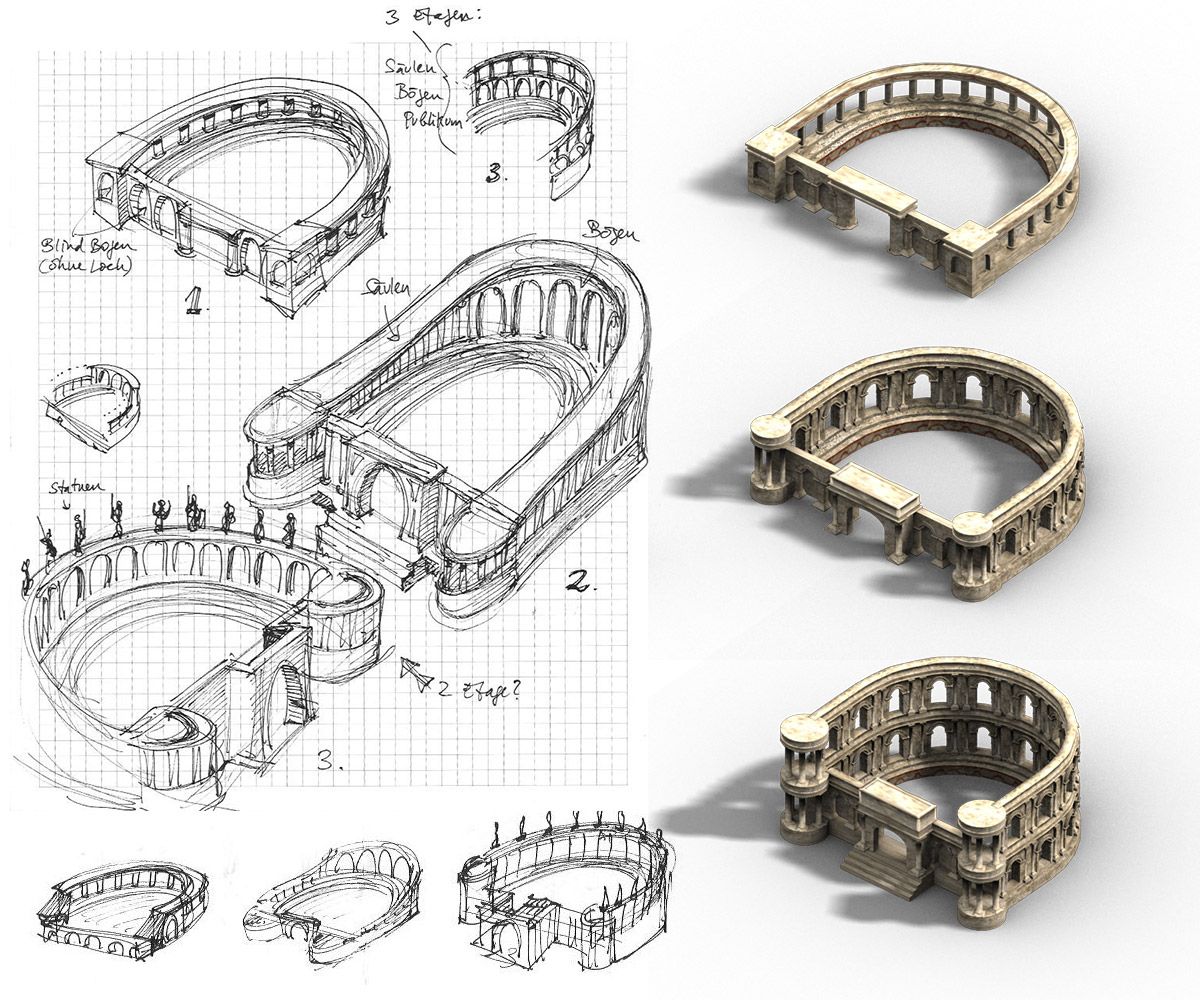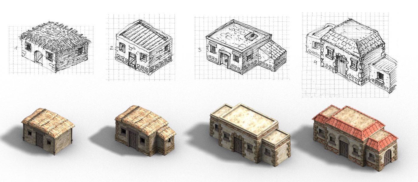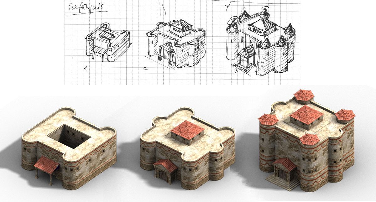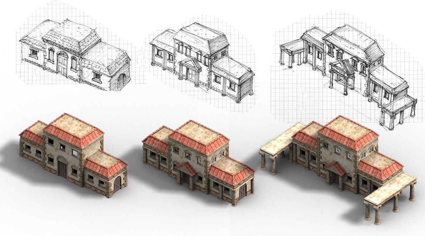 Me encargaron renovar muchos de los antiguos edificios romanos del juego. Y eso incluía la fase de concept art, bocetaje de ideas para estructuras arquitectónicas y edificios, para acabar ejecutándolos en 3D, aunque los gráficos son prerenderizados en el juego y no en 3D a tiempo real, pues había de ejecutarse en un navegador con los mínimos recursos posibles.