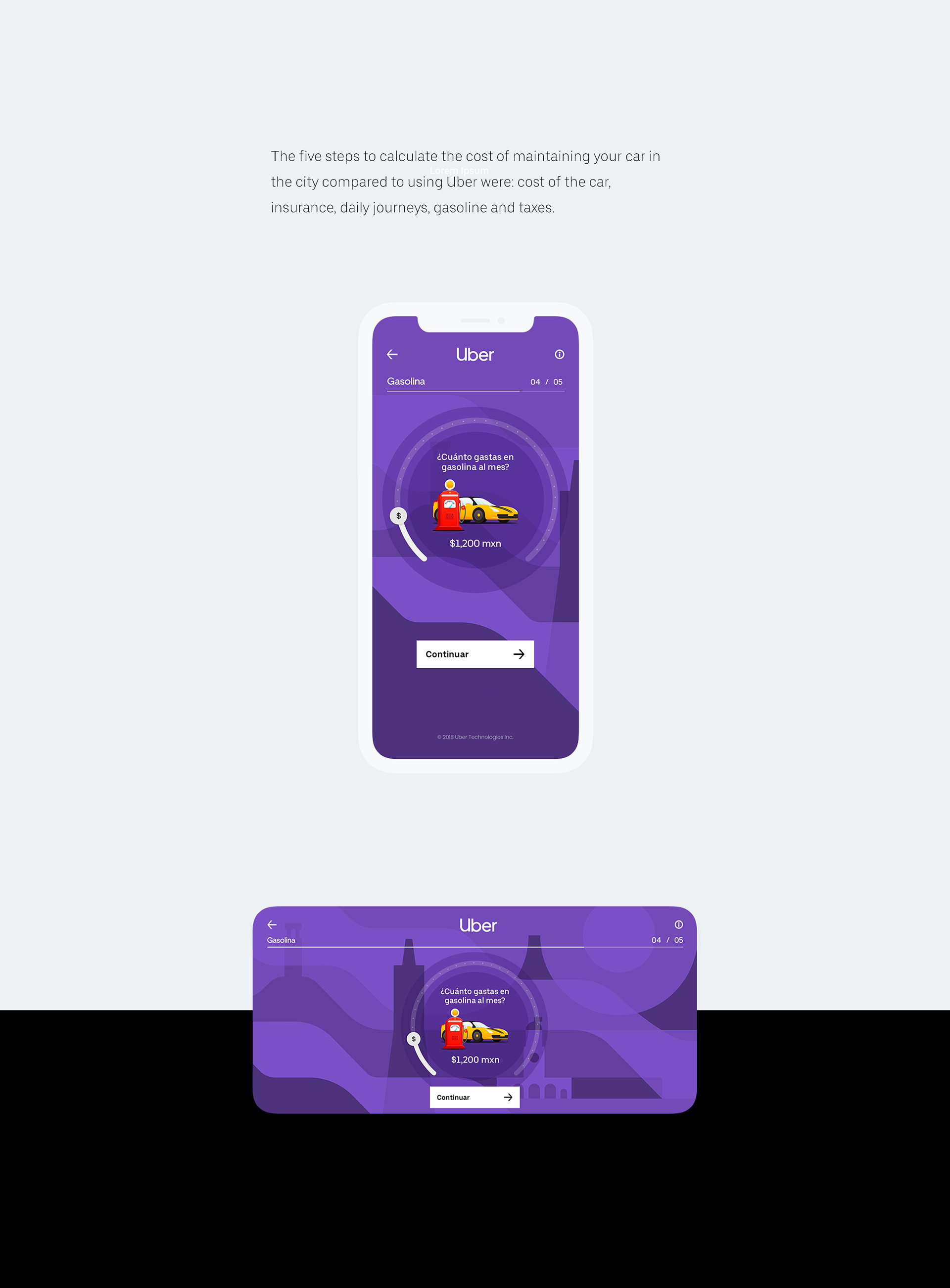 Esta fue la propuesta gráfica para este producto web que Uber lanzaría en el año 2019. Su objetivo principal era demostrar los beneficios económicos de viajar diariamente con la plataforma en comparación con tener y mantener su propio auto.