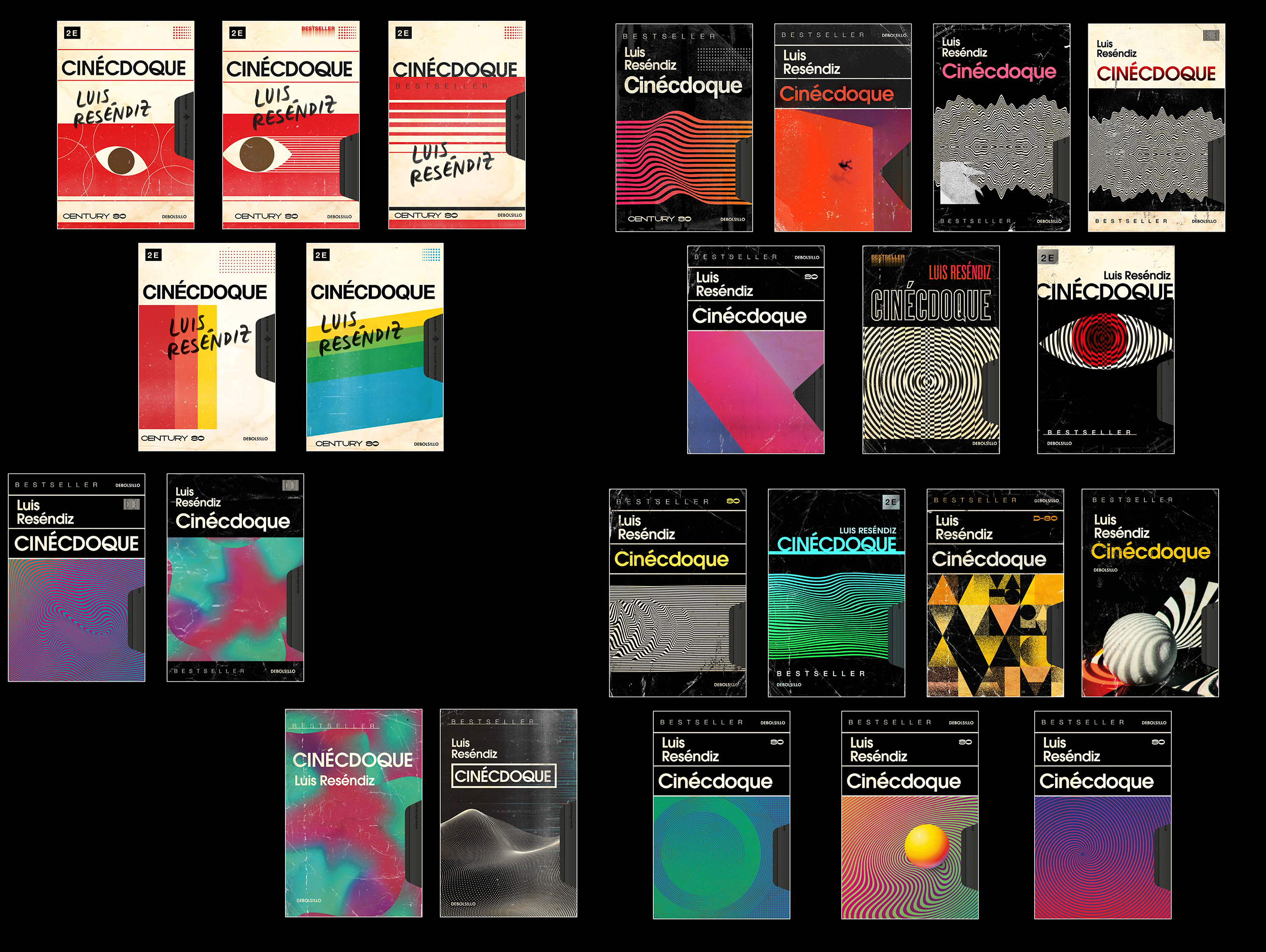Cinécdoque es una compilación de ensayos escritos por Luis Reséndiz. Los ensayos de Luis están llenos de clásicos y nostalgia por la década de los noventa, así que decidí hacerle homenaje a los VHS que recogíamos en el videoclub de la colonia en esa década. La portada resultó en un objeto que apela a esta experiencia que comparto con Luis y con sus potenciales lectores.