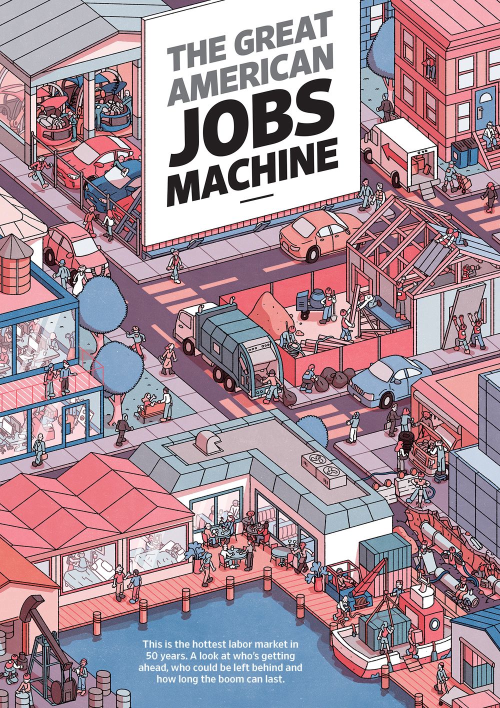 Cover and spot illustrations for The Exchange Section of The Wall Street Journal about what to future looks like amongst many job markets.