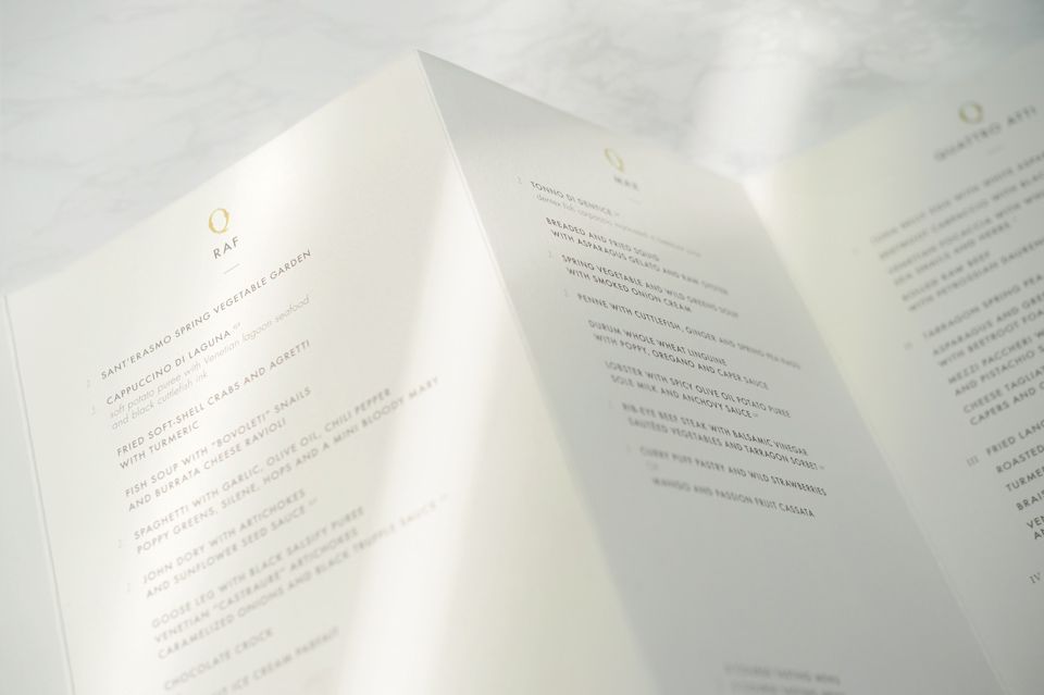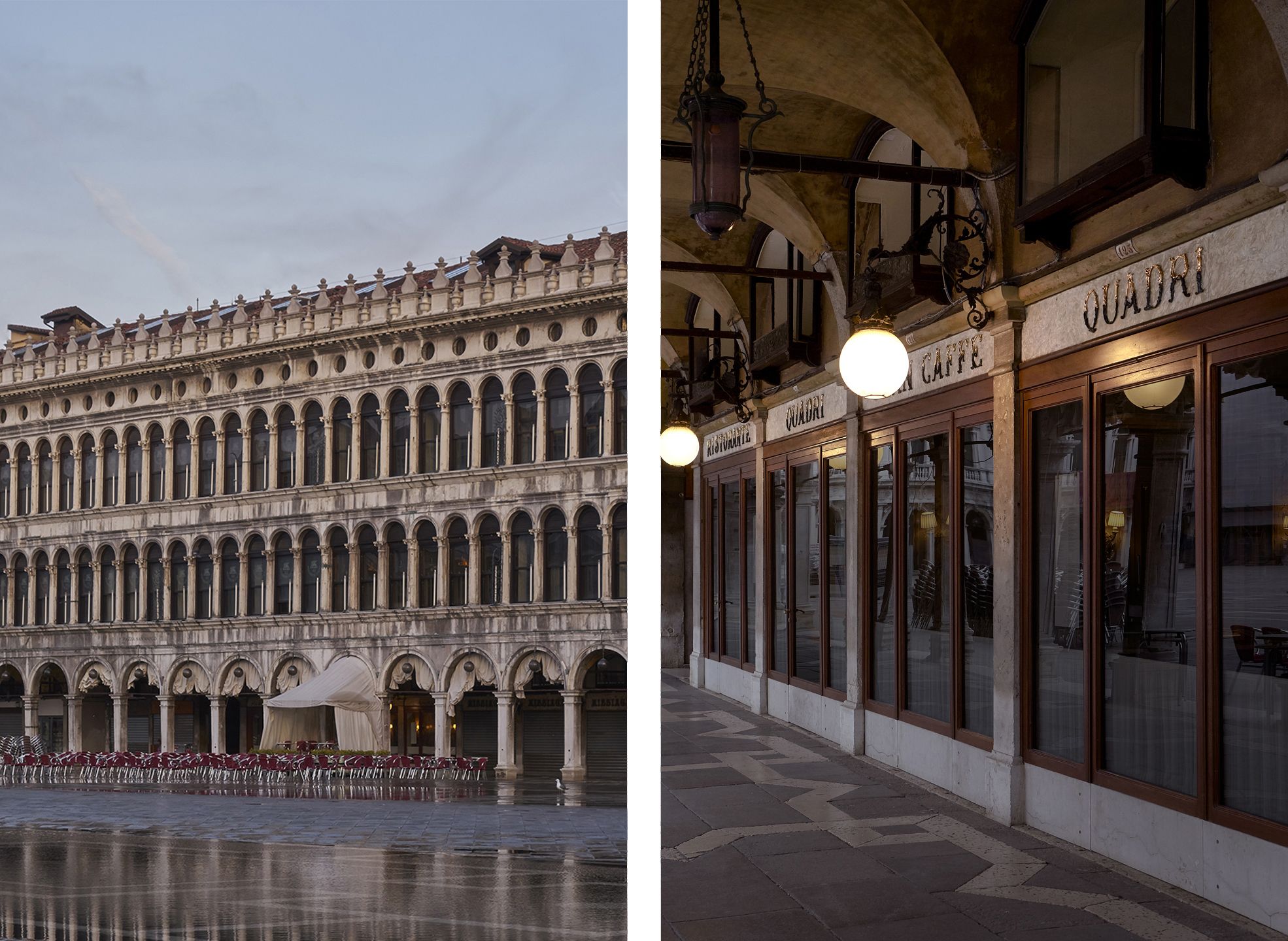 Quadri is a Michelin-star restaurant set within Piazza San Marco for almost 300 years. While its decadent interiors have gently faded, Quadri stood proudly near the lowest point in all of Venice as the waters of the Grand Canal left their mark on this iconic place. Now, alongside the interior’s respectful restoration, we created an identity that half polished the old lettering above Quadri’s doors to remind us of the tide marks left on the building’s walls.
