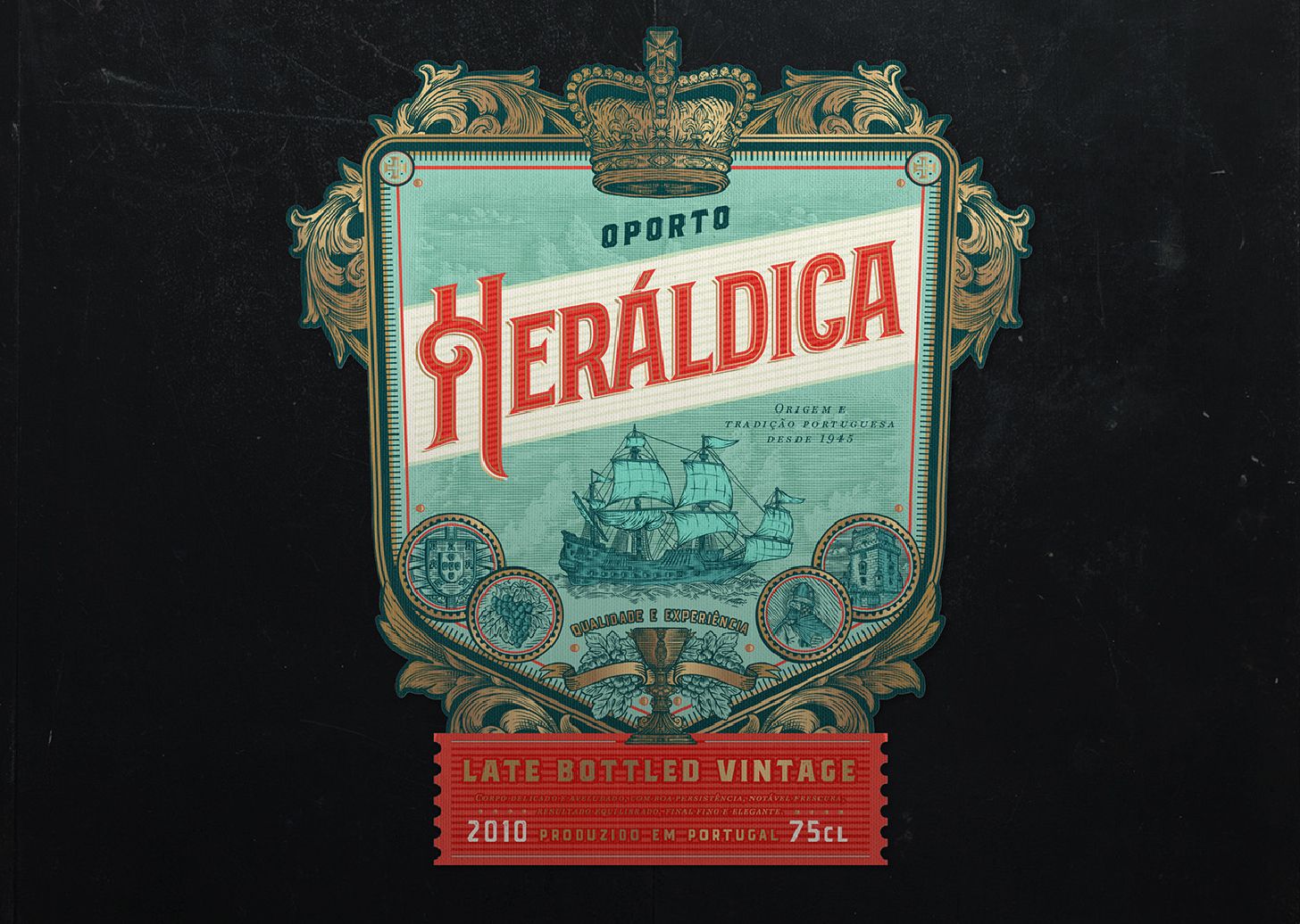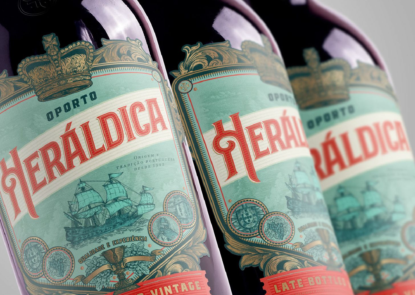 Oporto Heráldica es una bebida premium elaborada con uvas de origen portugués, embotellada en 2010. El concepto del diseño se centra en la heráldica tradicional del país de Portugal, y sus principales íconos históricos como barcos, reyes y castillos. La rica cultura del país portugués permite una fuente infinita de inspiración.