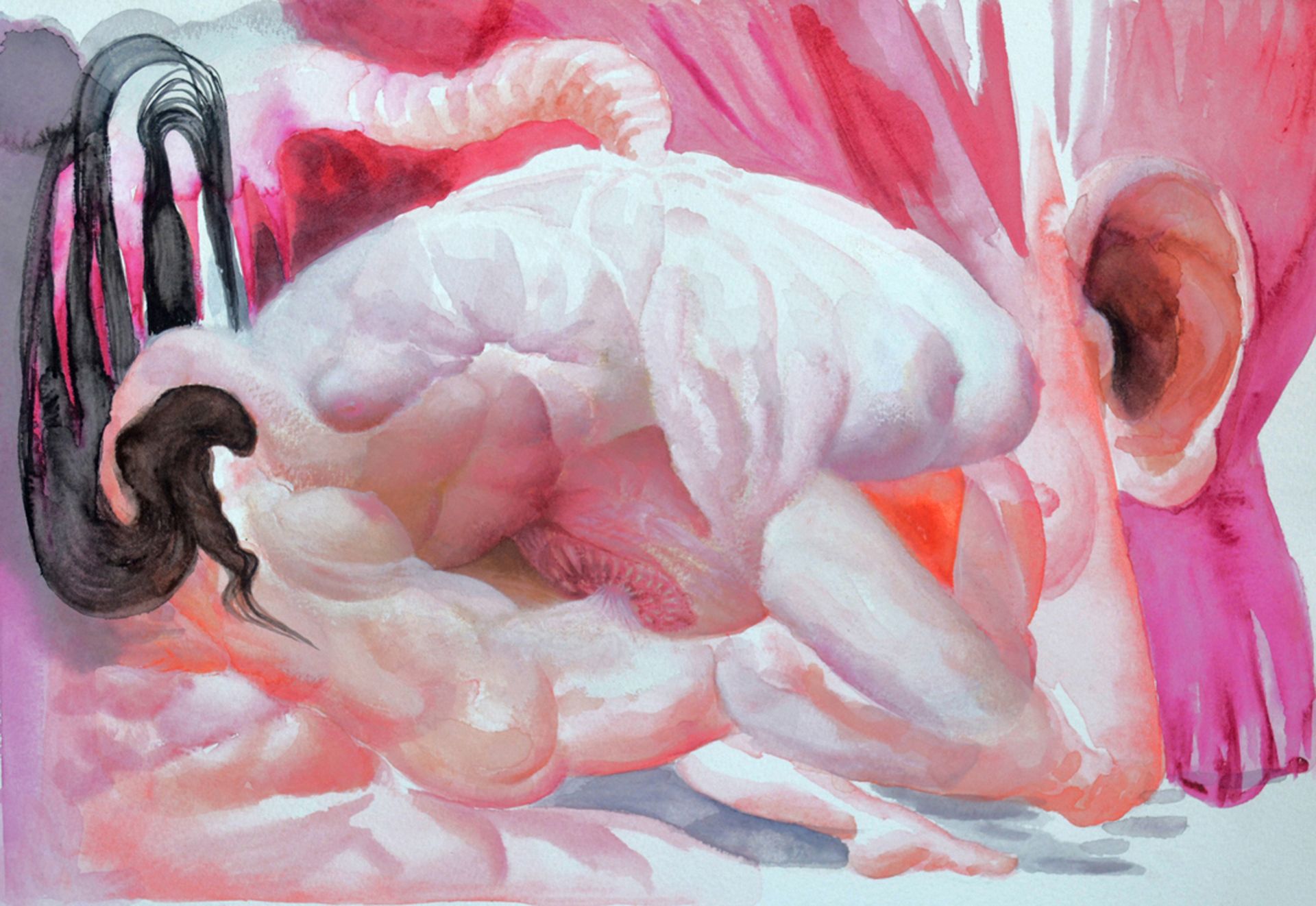 Rosa mística. Acuarelas. “Al ascender, Cúmulo Místico, se le veía entre las piernas la valva redonda y rodeada de pétalos, de coágulos, como una dalia de muchísimos pétalos. Había encontrado el camino al cielo.” Marosa di Giorgio