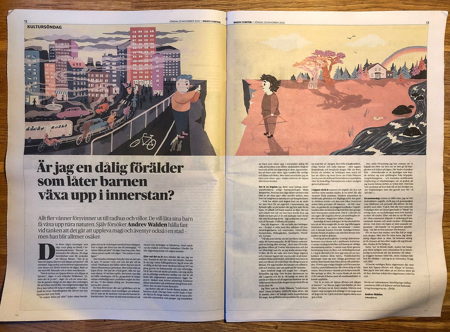 Writer Anders Walden has written a text about whether he's a bad parent choosing to raise his kids in the city instead of giving them the idyllic upbringing in the woods that his bad conscience is imagining?