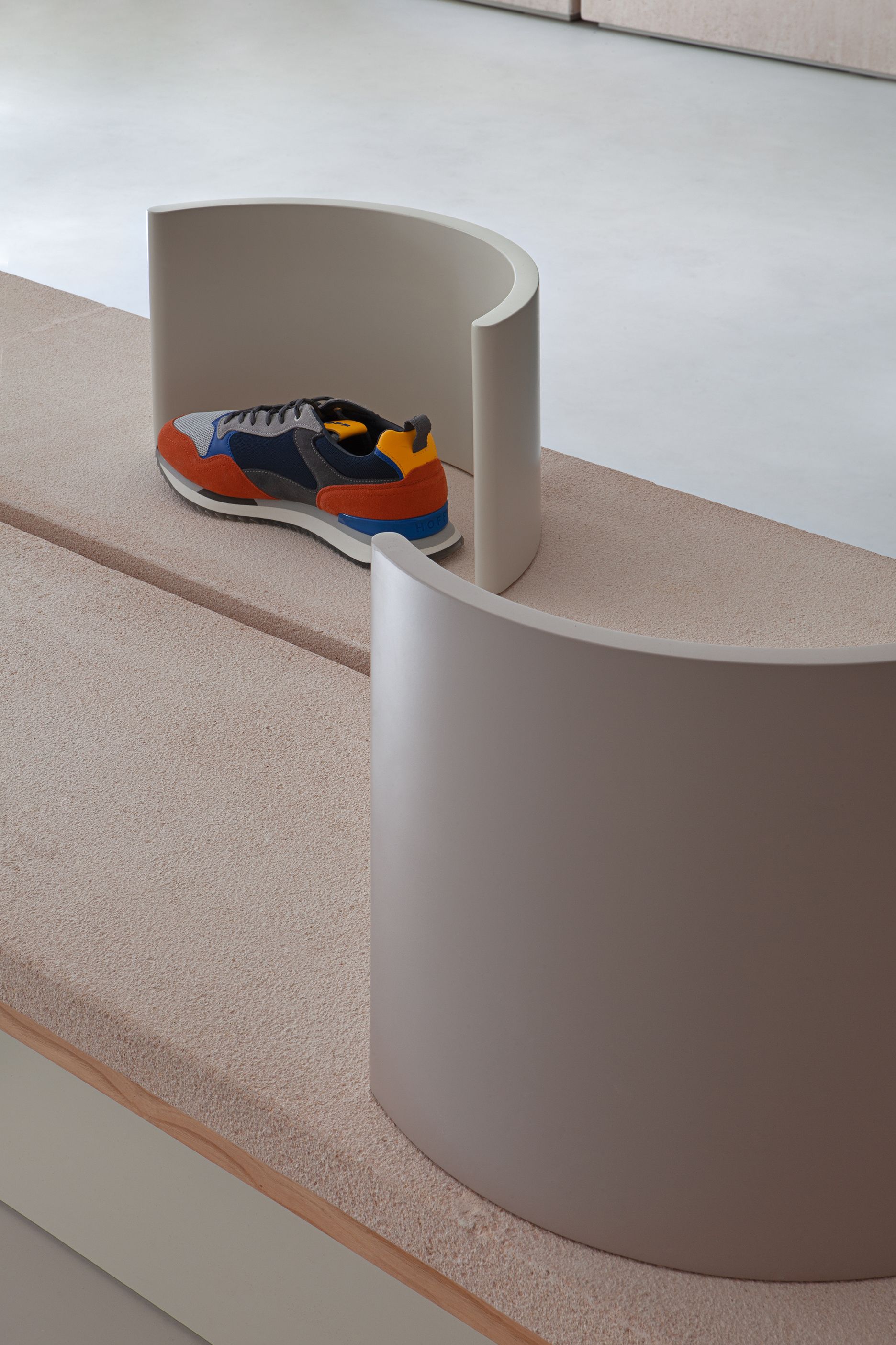 Ciszak Dalmas Ferrari studio was called to design the interior architecture with the clear scope to conceptualise a space beyond a traditional sneakers retail environment, and to highlight Hoff’s commitment to purity, clean lines and simple geometries in their products.