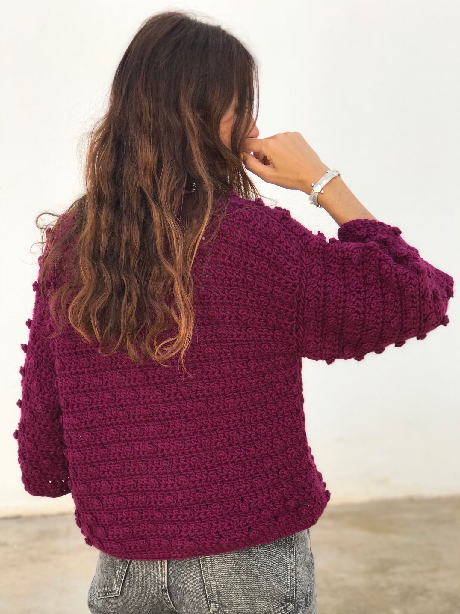 Este Sweater en concreto, es una pieza muy asequible para principiantes. Se trata de un diseño sencillo pero las "bolitas" que adornan toda la pieza le dan un toque muy especial. Sin duda es uno de los proyectos más vistosos y entretenidos de tejer.