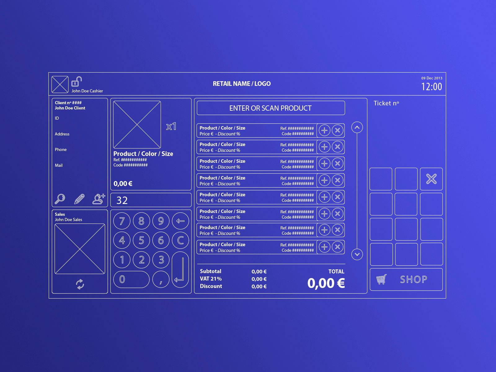 Este proyecto consistía en diseñar una interfaz de usuario intuitiva y de fácil manejo para un software de TPV adaptable para cualquier tipo de tienda o comercio. El principal problema que nos encontramos a la hora de analizar referentes fue que, en la mayoría de los casos, los diseños eran realizados por los propios desarrolladores, los cuales se centran más en la parte de programación sin tener demasiado en cuenta cuestiones de usabilidad, y sobre todo, de estética.