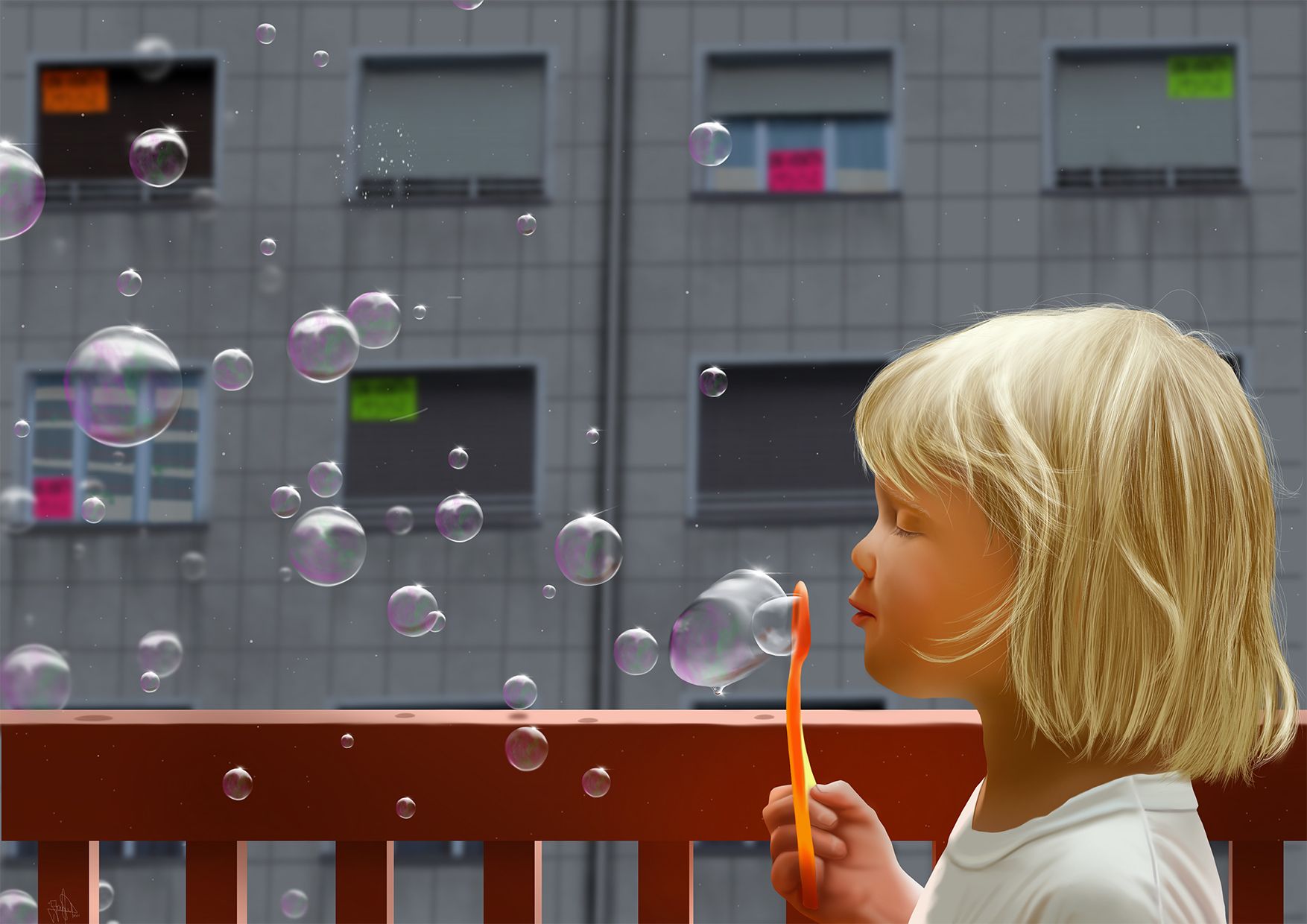 La burbuja - Pintura digital realizada con los dedos en el Ipad