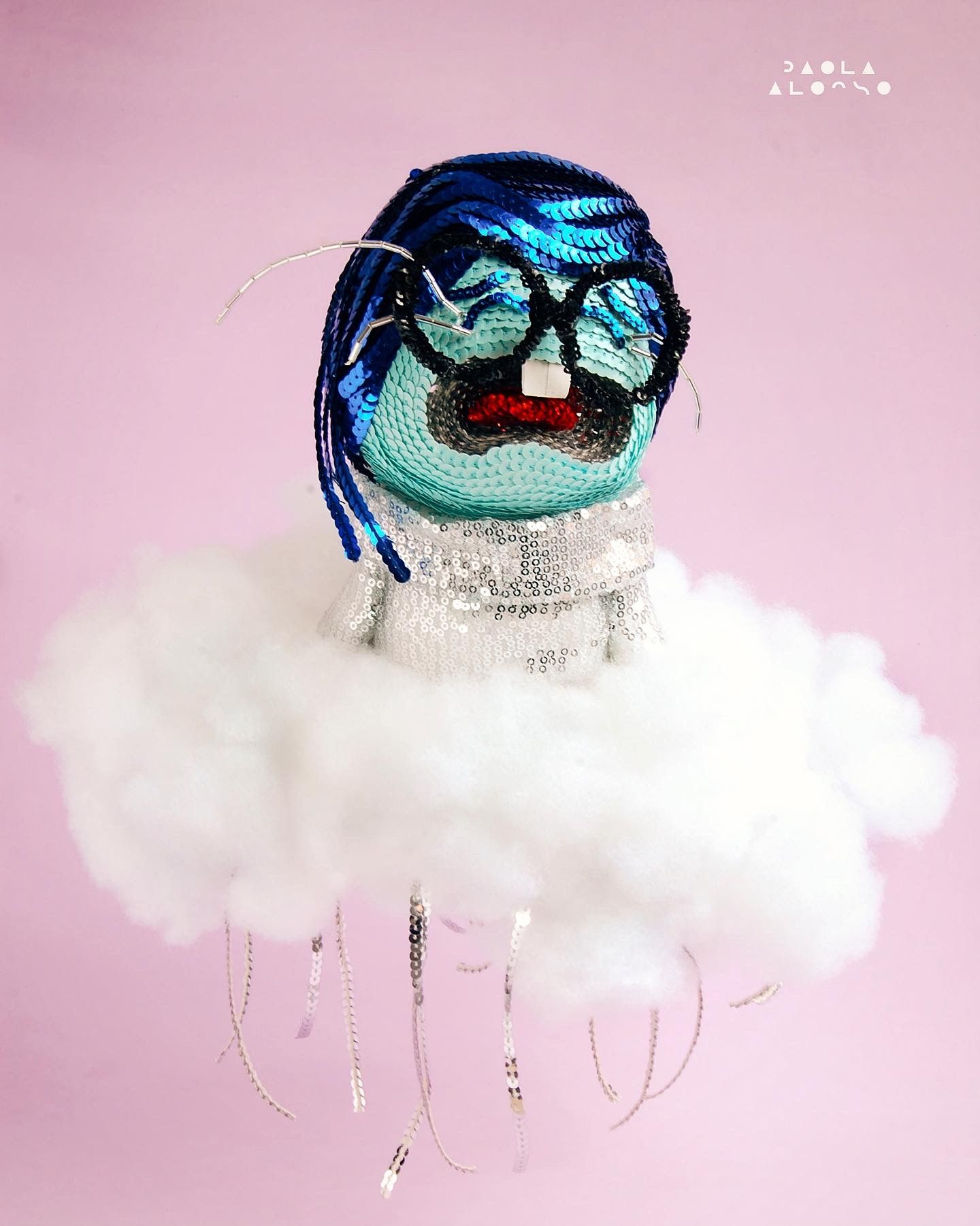 Encargo especial de Pixar para su #PixarFest2020 . Escogí este personaje por su complejidad en todo lo que reúne la emoción que representa. Cuerpo hecho con técnica convencional de pegado, con tela pra su ropa y relleno siliconado para la estructura de la nube, además de lagrimas de canutillos con alambre.