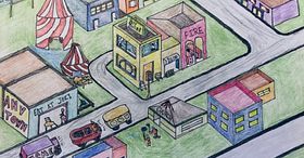 Representa las personas y los lugares que viven en tu imaginación en escenas dibujadas a mano