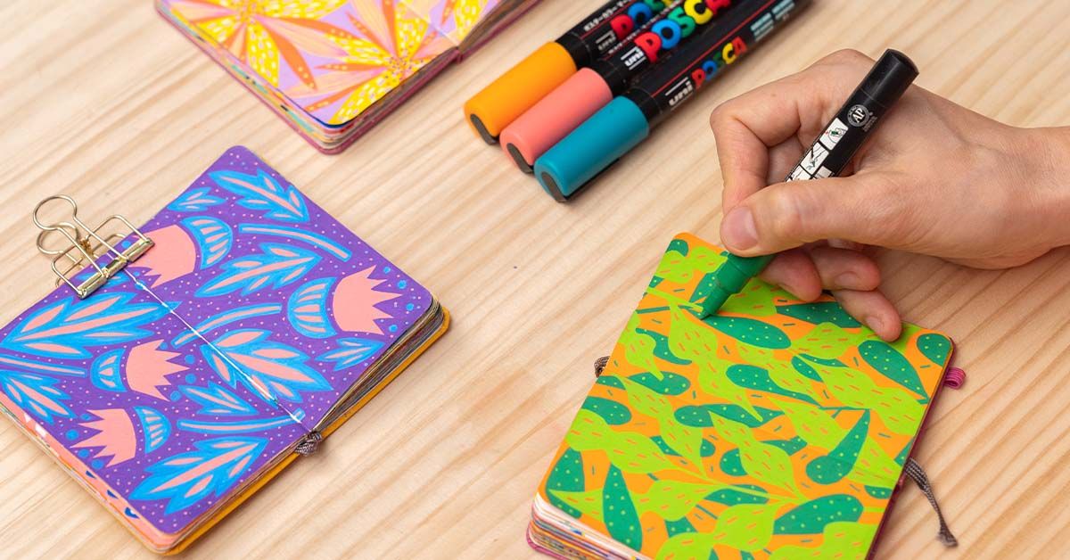 Apprenez à utiliser des marqueurs de peinture et d'autres matériaux simples pour trouver de nouvelles idées et remplir un carnet de croquis vierge de motifs audacieux.