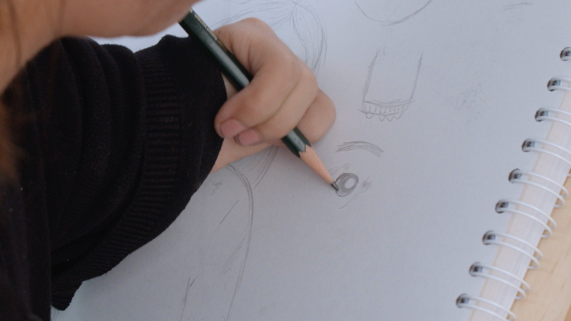 Si tu personaje es un protagonista, potencia los detalles y utiliza una línea fuerte y viva. Si está acompañado por un personaje no protagonista, puedes probar con una línea más suave y con un acabado menor. Así conseguirás marcar claramente la diferencia entre ellos. En el ejemplo anterior, Valentina muestra un ratoncito que acompaña a la niña que ha creado y que es la protagonista. Los trazos del ratoncito son mucho menos vivos, lo que lo caracteriza enseguida como un personaje secundario.