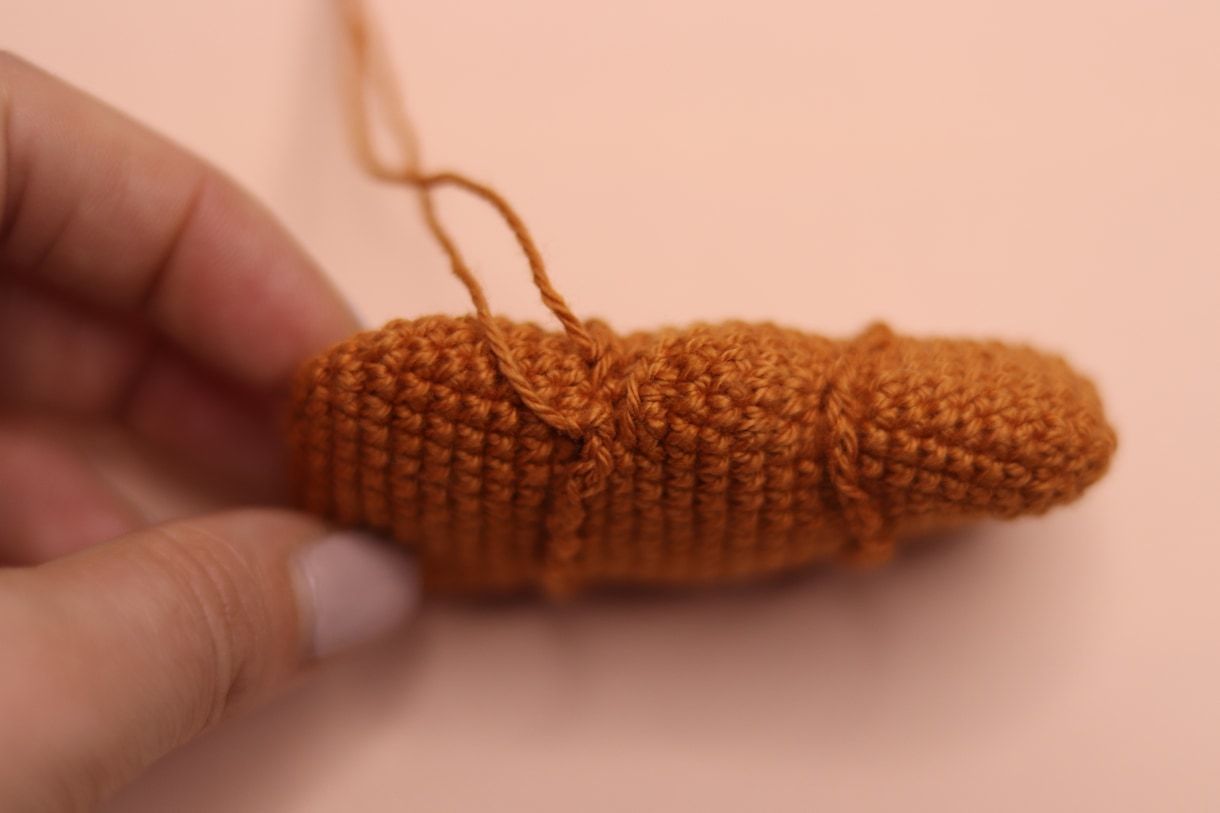 2. Coupez le brin suffisamment long pour coudre l'extrémité. Remplissez d'abord votre amigurumi de molleton, puis cousez les deux extrémités en utilisant un sc avec un autre sc.