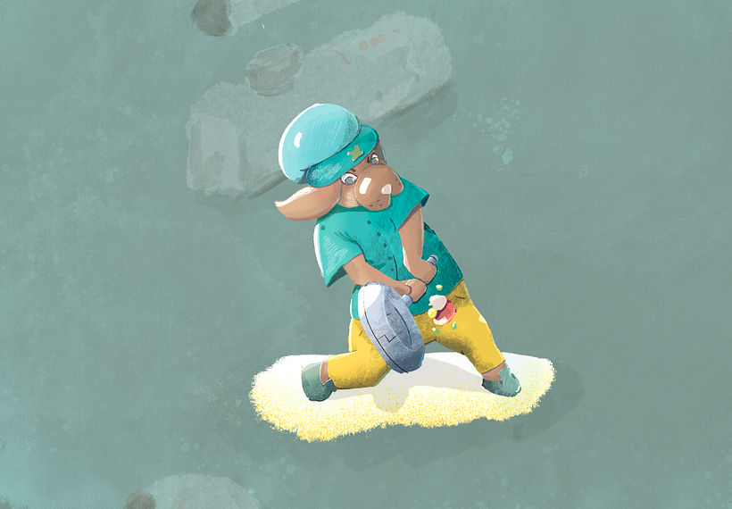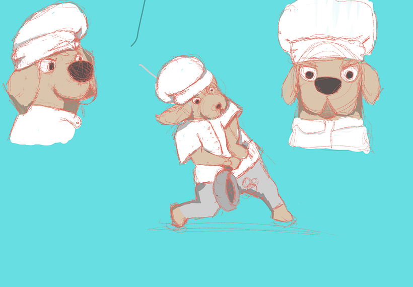 I always feel inspired by my pets, so i decided to ilustrate one of my dogs doing something "human". I wanted a cool dynamic pose, taht when the idea of a baseball swing came in, and then i thought what if instead of a bat and a ball i painted a pan and some food.