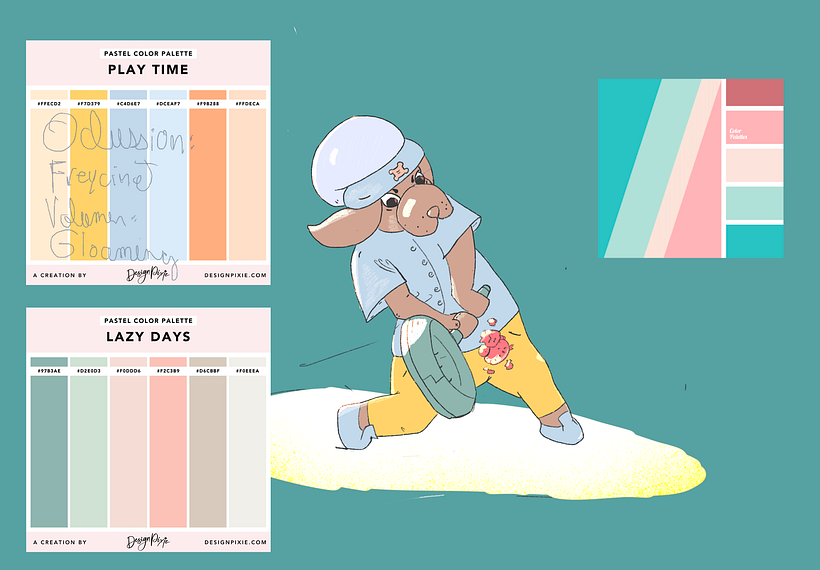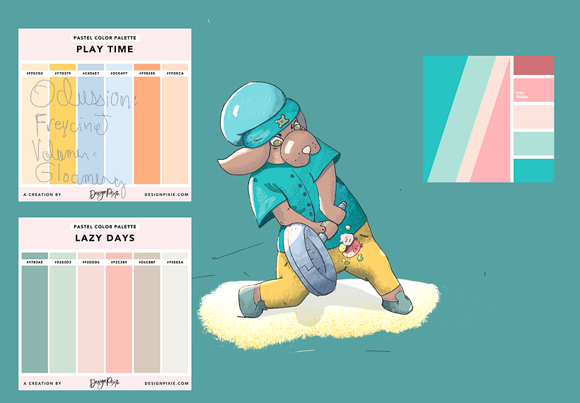 Silhouette,line of action, and color options. I googled some color palettes to use.