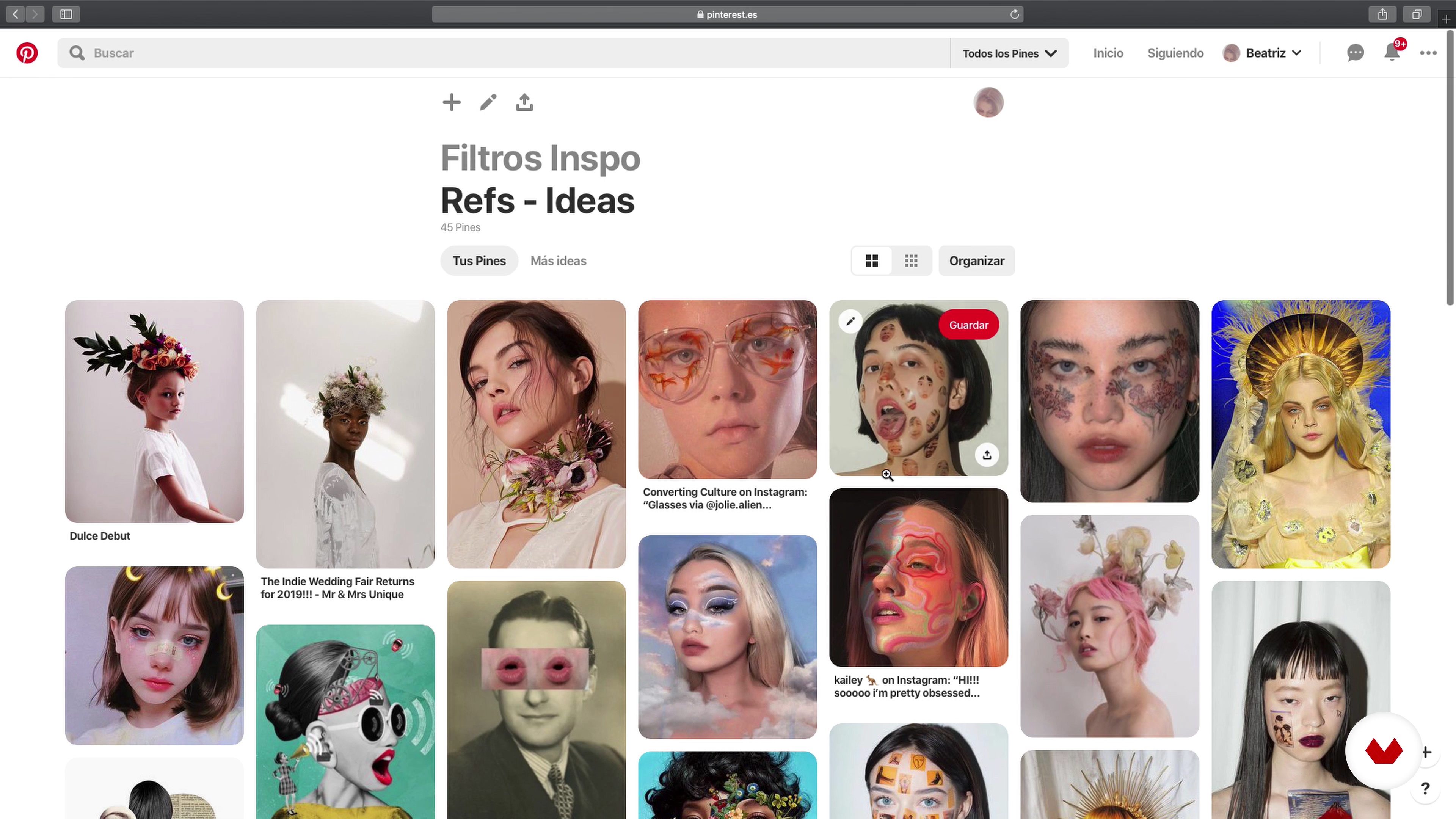 “Travaillons sur notre filtre. Je partage ma méthode pour trouver de l’inspiration quand je bloque : je m'efforce toujours d’être inspirée par mon propre travail. inspire le filtre que je vais créer pour garder une ligne cohérente entre mon travail et la création de filtres. Par exemple. le filtre que nous allons créer dans notre cours aura comme une végétation autour de la tête. ce qui est une ressource que j'utilise beaucoup dans mes illustrations. Un outil que je trouve extrêmement utile et que je recommande toujours est Pinterest. Ceux qui ont suivi cours précédent savent combien je l'ad...”