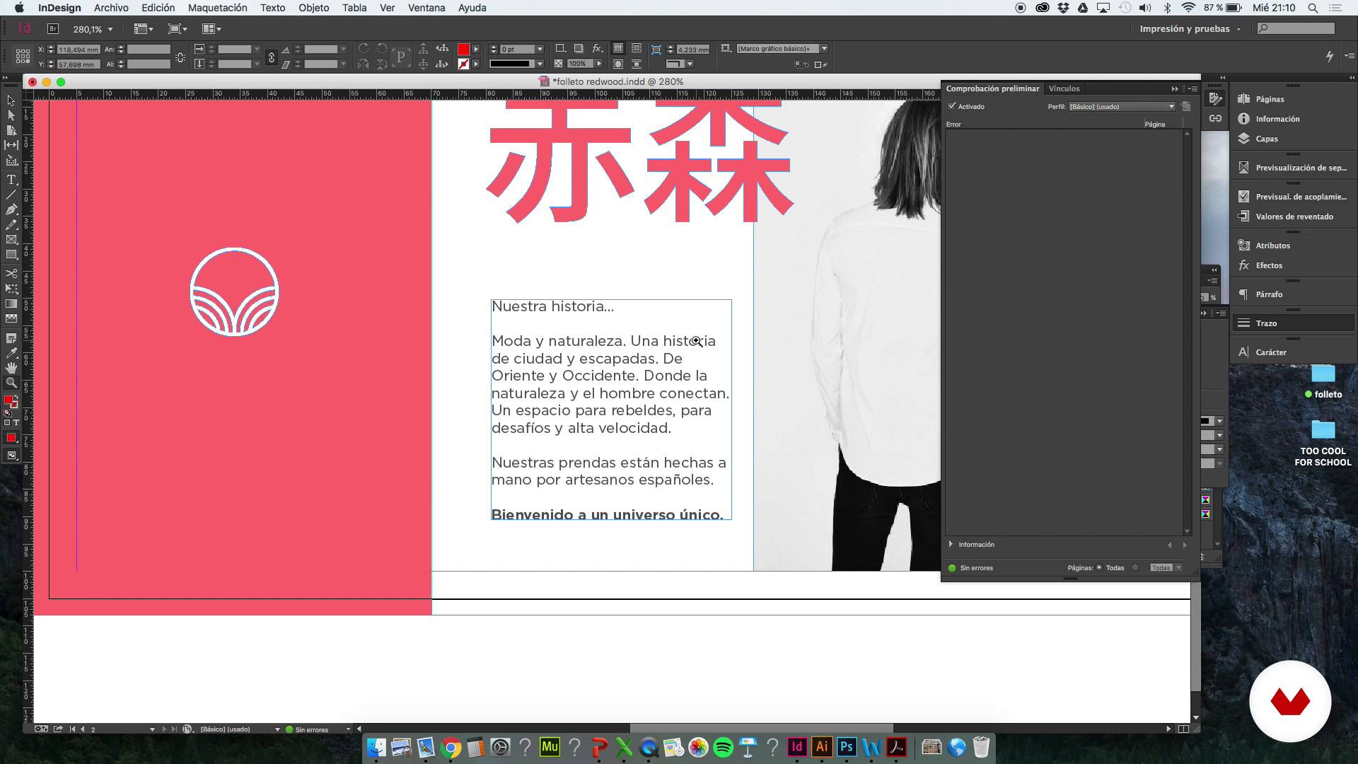 “Bonjour à tous. Dans la vidéo précédente. je vous ai donné quelques clés pour réaliser un bon art final. Et maintenant. ce que nous allons faire. c'est prendre le design de María et vérifier qu'il est correct pour l'envoyer à l'imprimerie. Bien. le premier point que je vous disais était de décider entre une impression offset ou numérique. Dans notre situation. il s'agit d'un simple dépliant. un triptyque plié en trois sections. ici. ici et ici. Nous avons opté pour une impression offset après discussion avec l'imprimerie. car nous avons discuté avec l'imprimerie et souhaitions utiliser une ...”