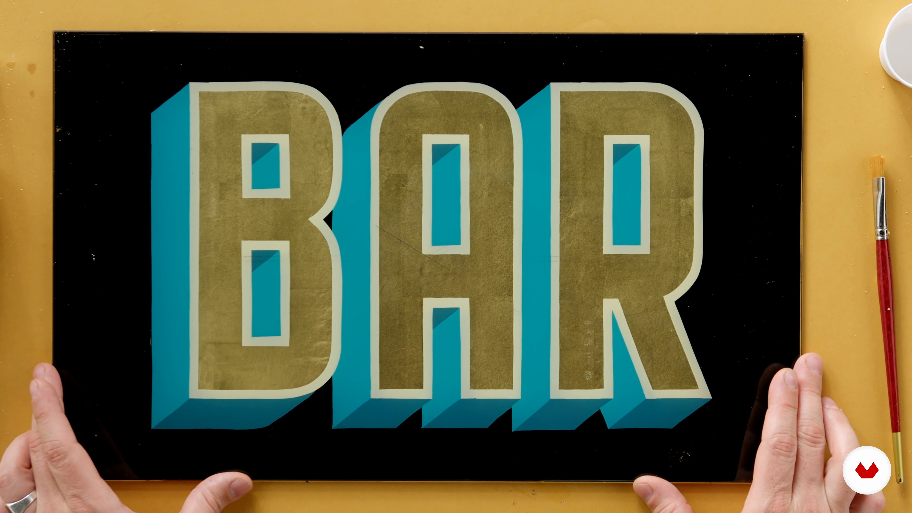 “Nous sommes arrivés à la dorure, la touche particulière que nous donnerons à notre enseigne faite main. Nous vous montrerons comment utiliser correctement la feuille d’or et comment corriger d’éventuelles erreurs. ”