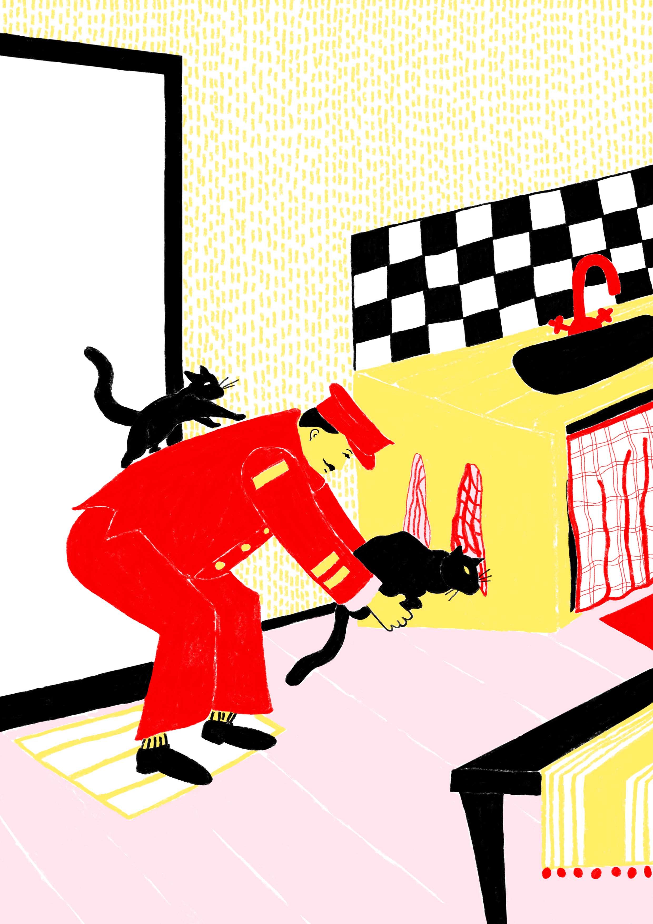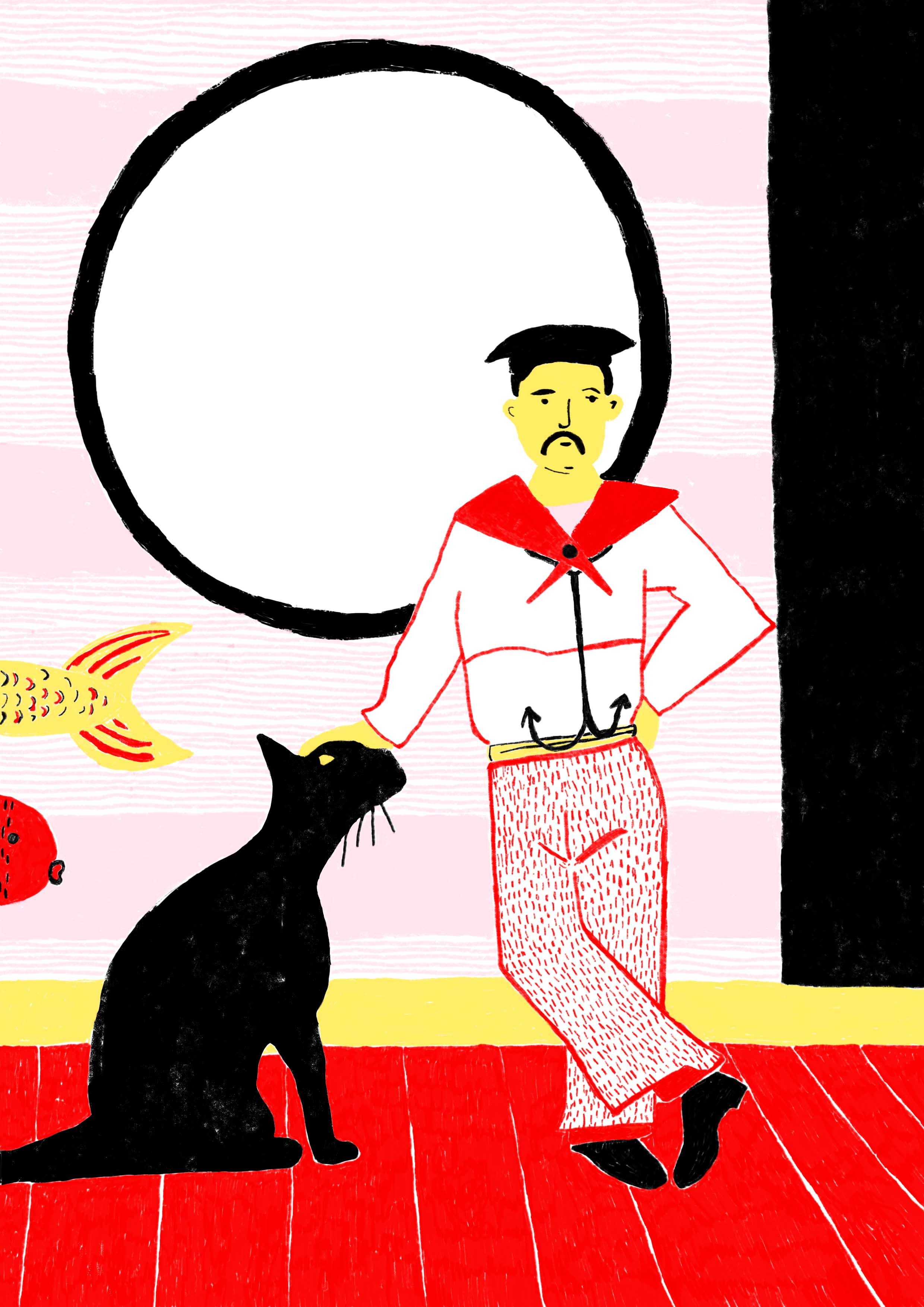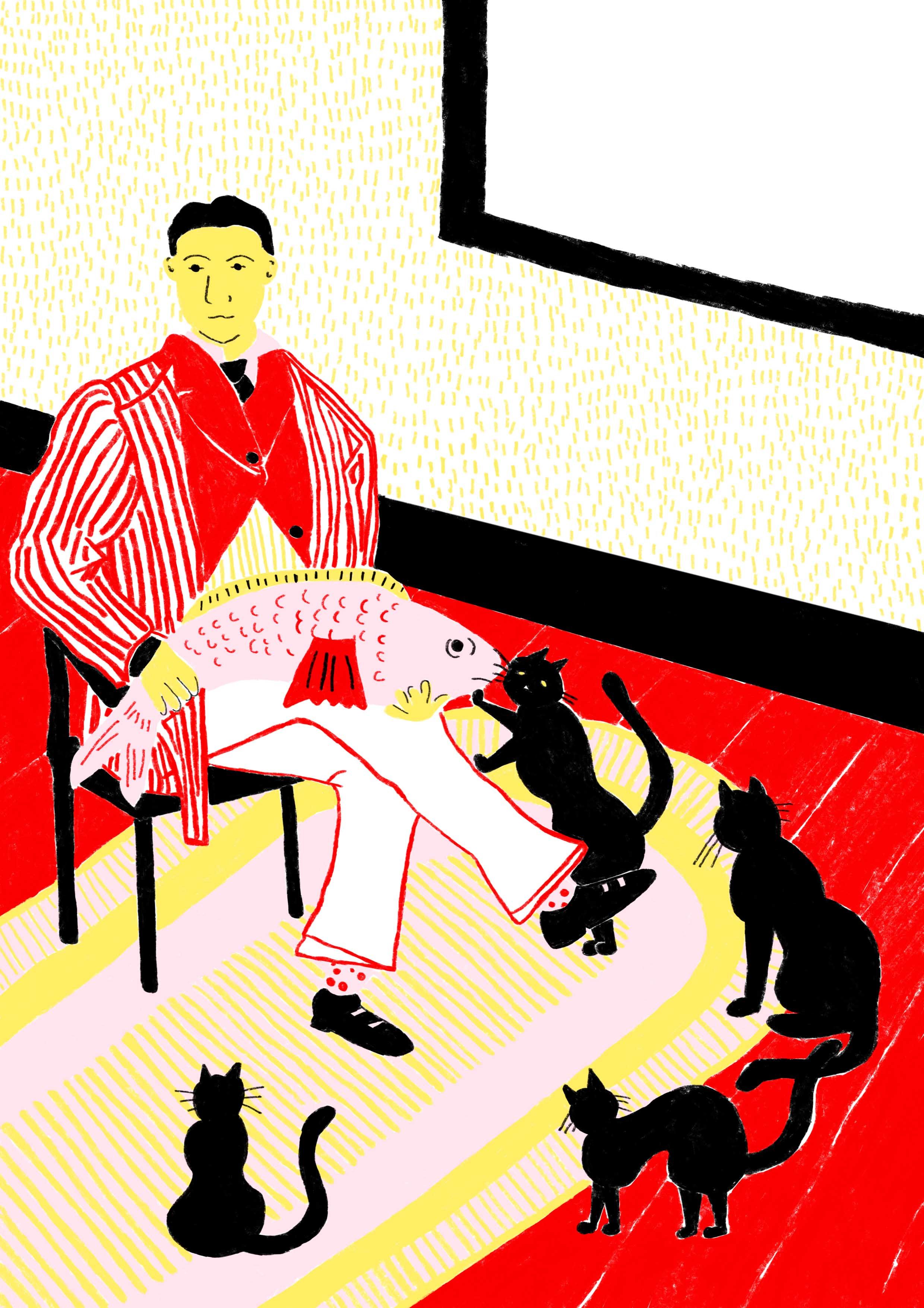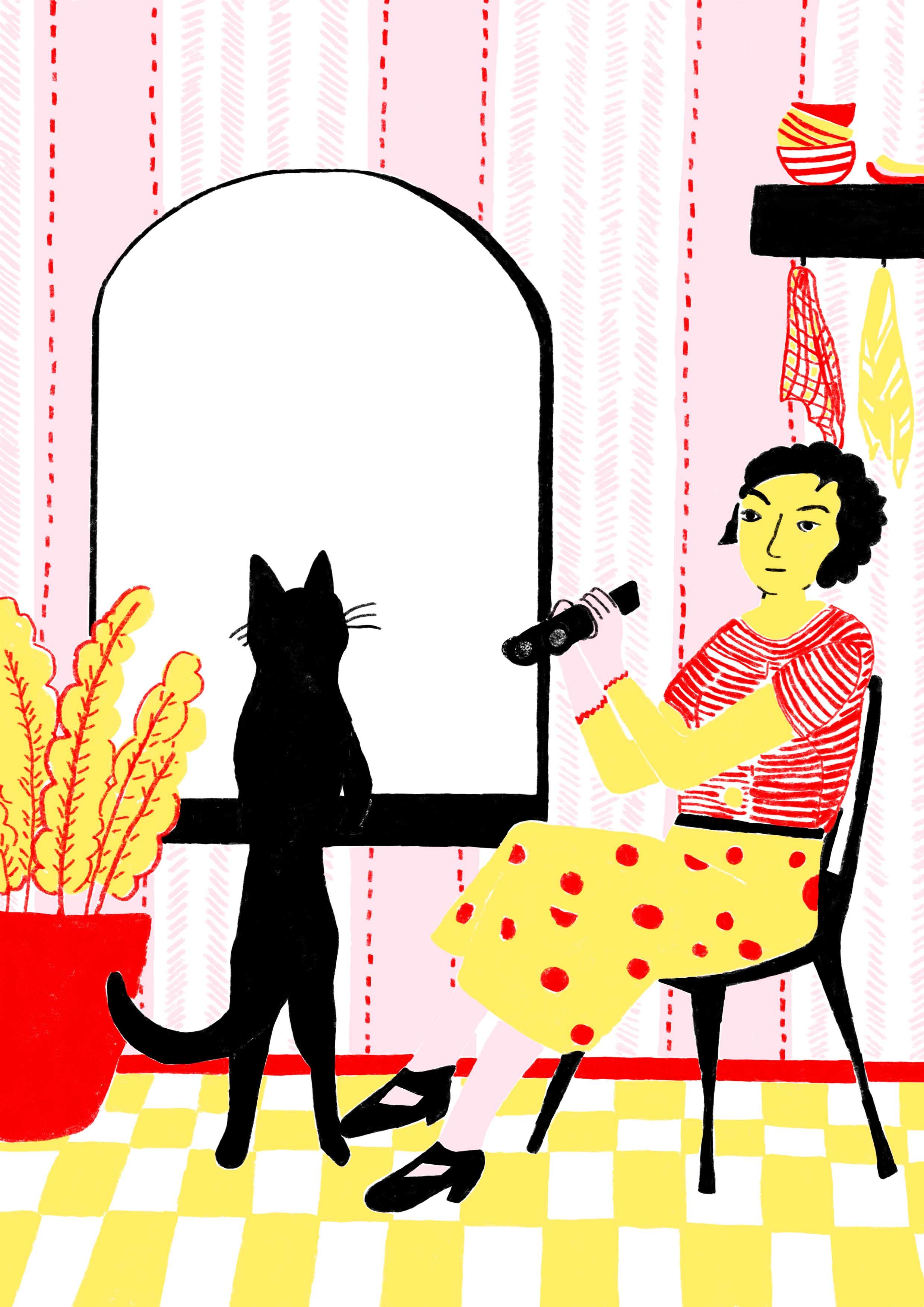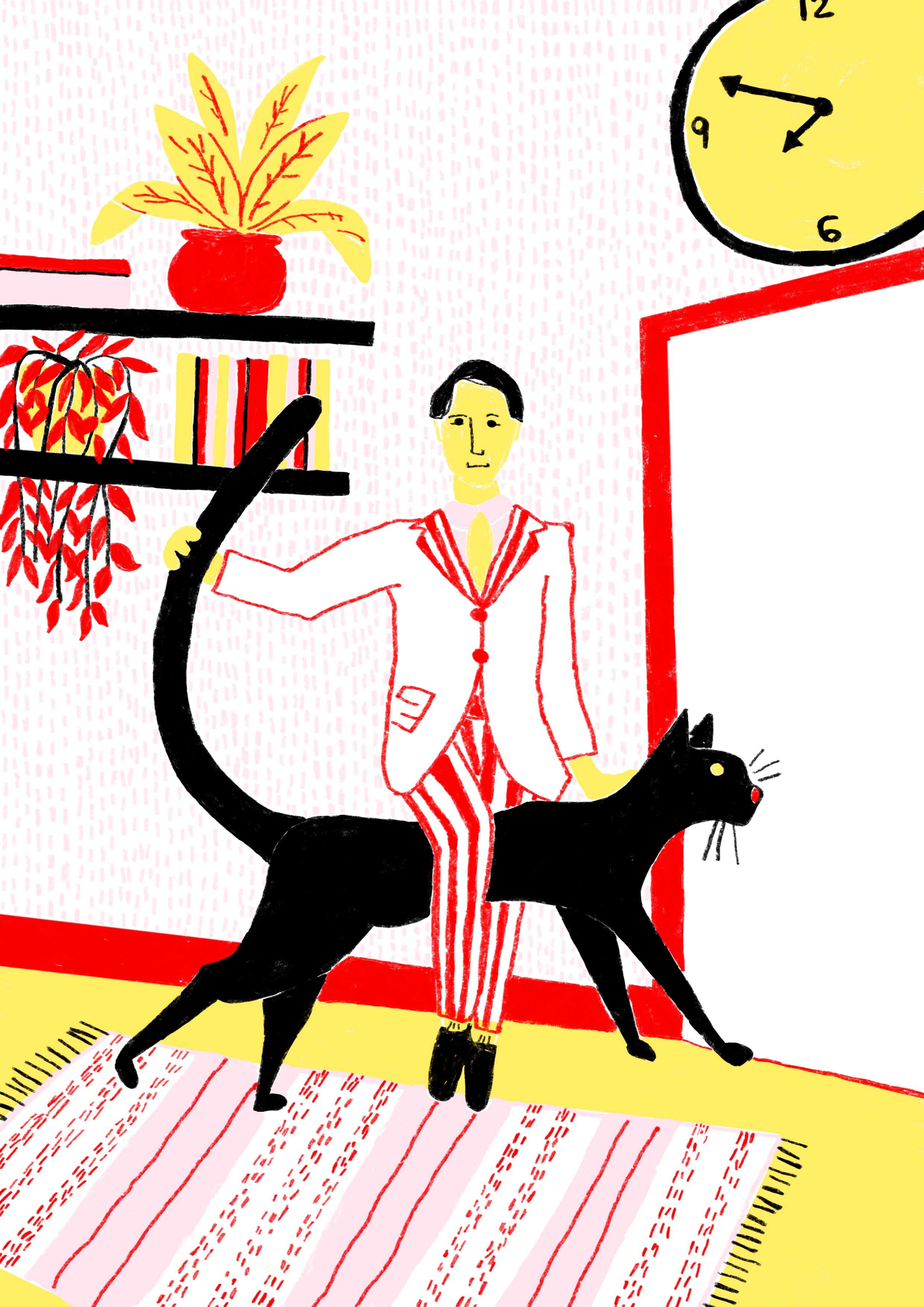 The first four lives were submitted for #IllustrationGym, a course by Santiago Solís Montes de Oca. They were drawn with pencils on paper and you can see the 4 original drawings here >>. As I continued with the series, I wanted to make reproduction prints too, so I started re-drawing the images in Photoshop. For more information about the series or prints, visit here >>