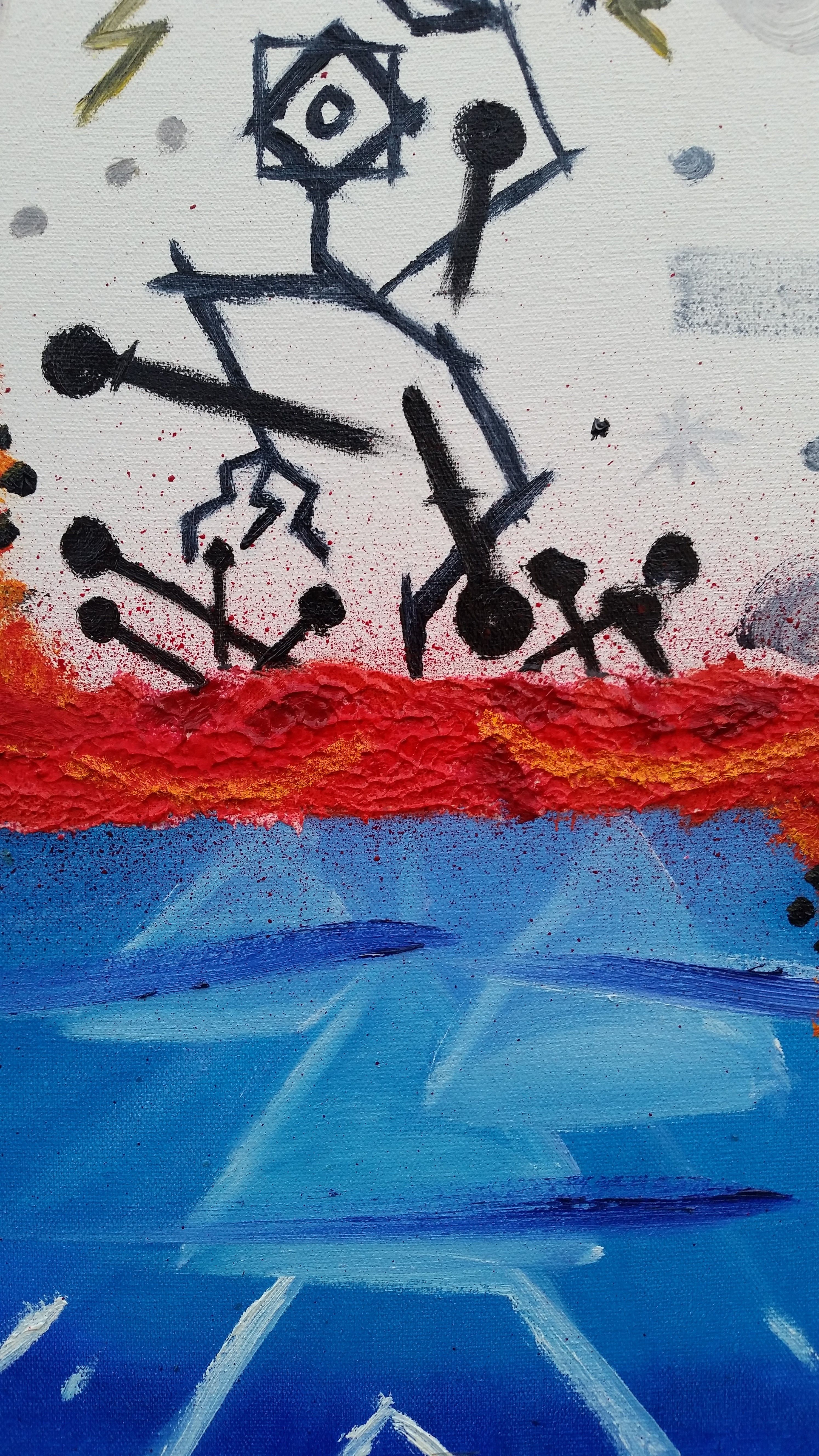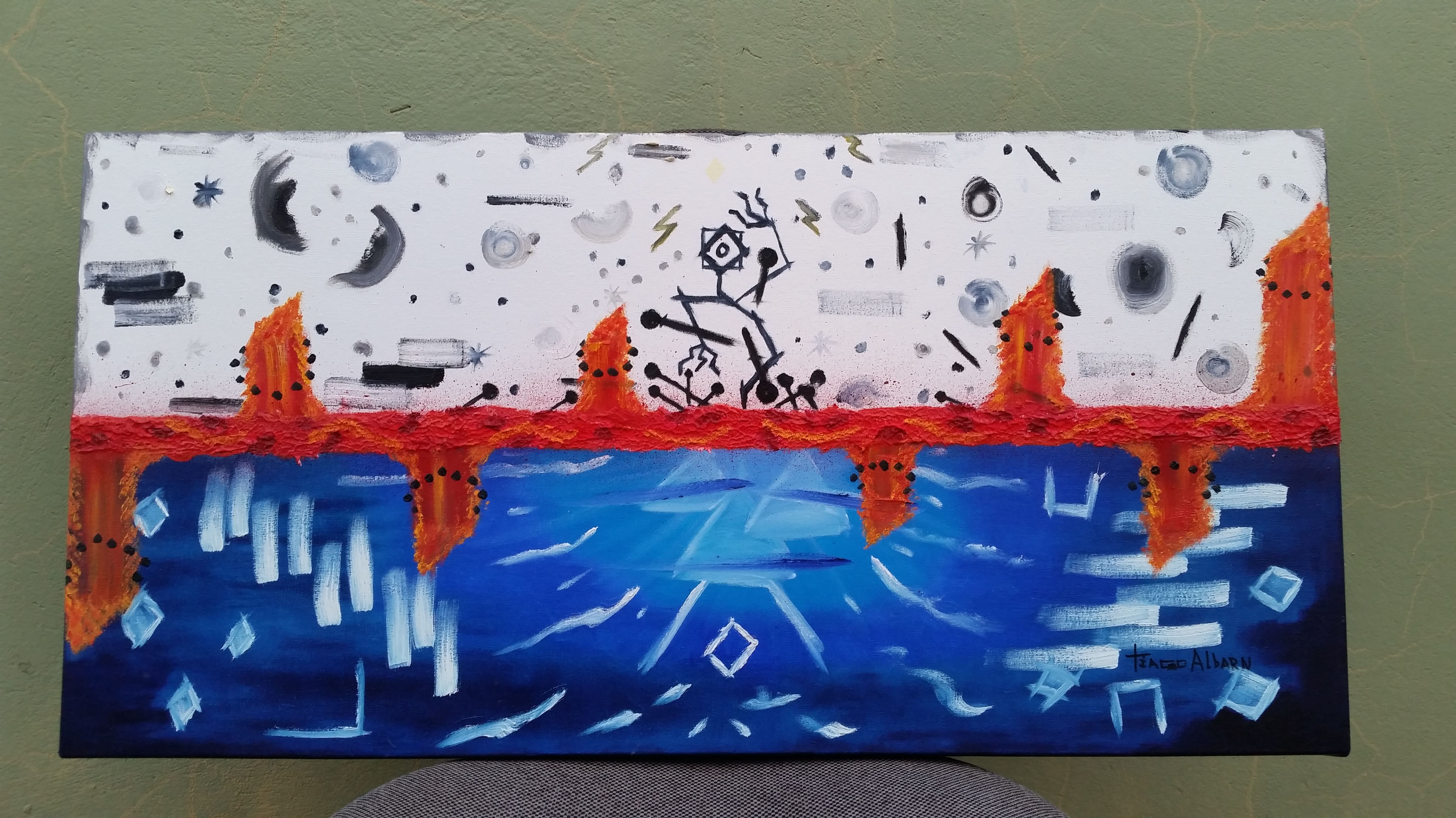 Algum tempo atrás, eu decidi ouvir três músicas em uma ordem específica da banda The Knutz, essas músicas me tocaram de uma maneira única, ao ponto de decidir fundi las em um só universo. Inspirando me mais uma vez para pintar e dar vida a essa obra totalmente autoral do meu interior para o exterior, de minha realidade para sua realidade.
