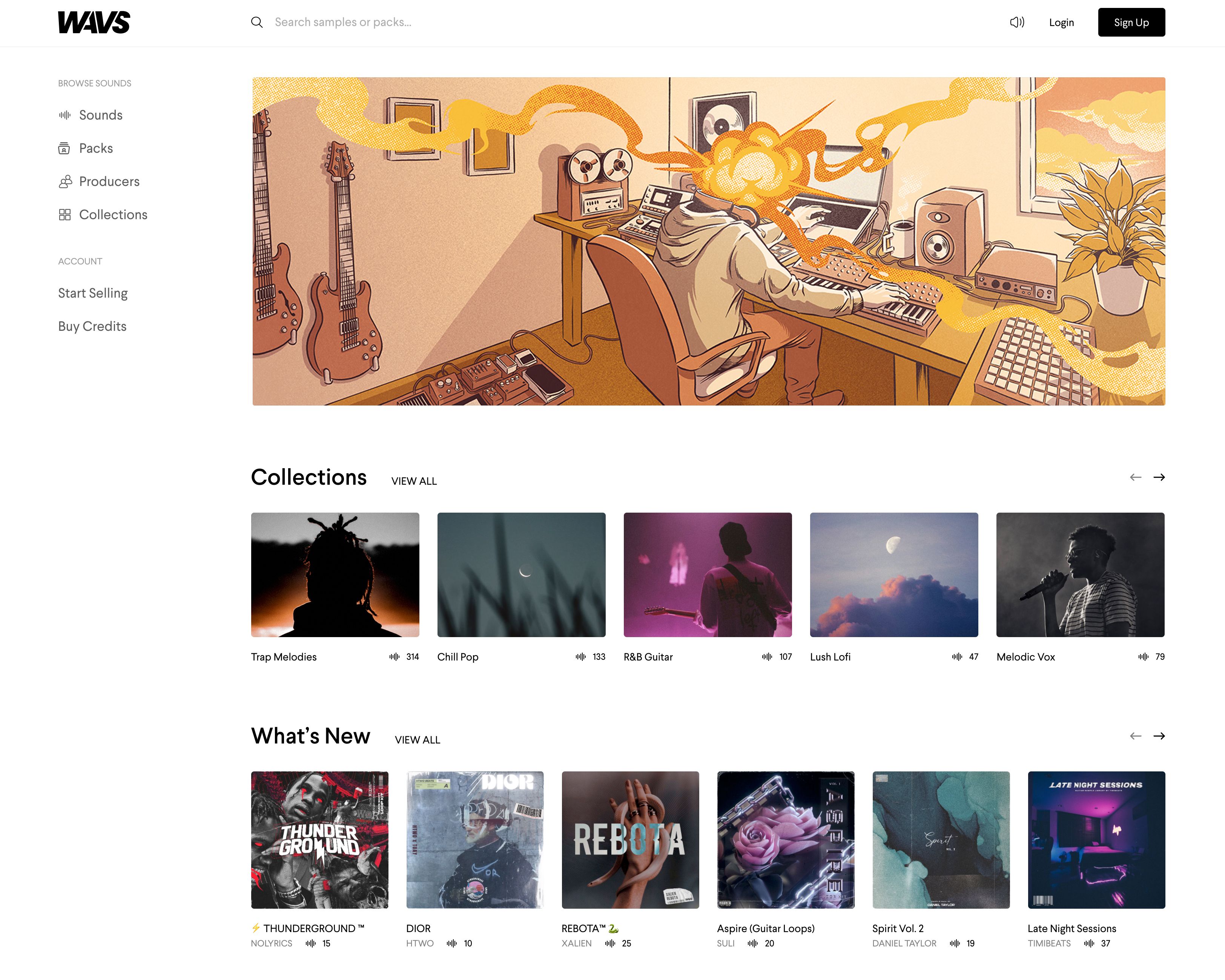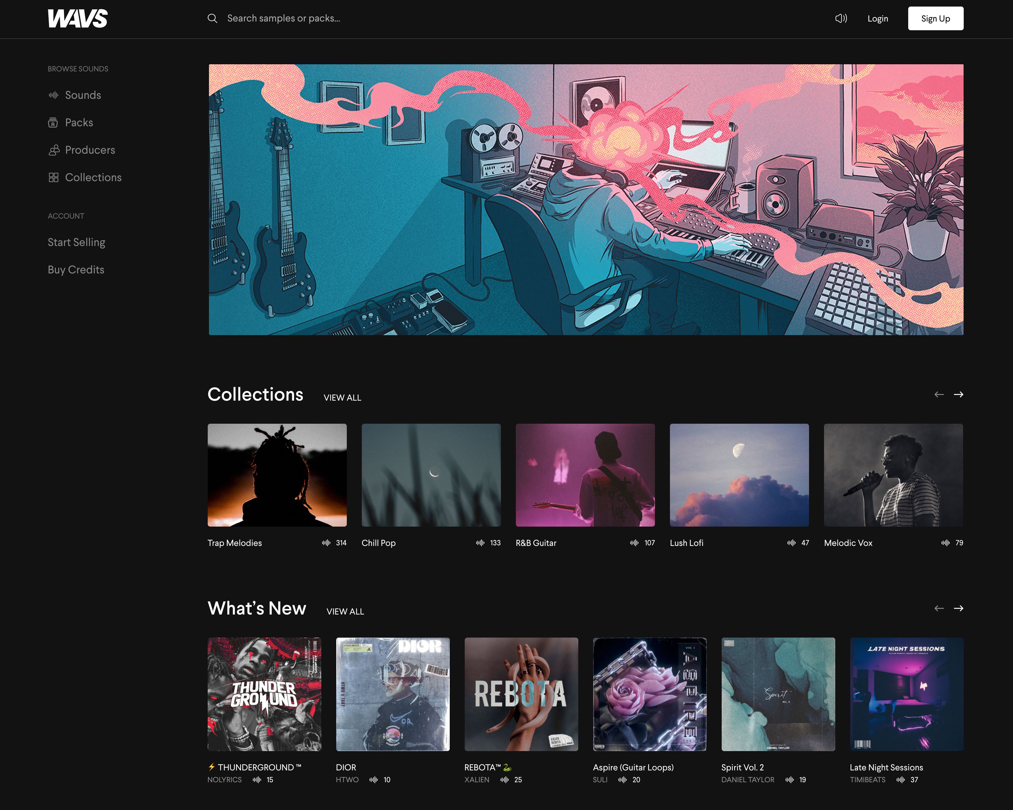 Wavs est un site web qui permet aux producteurs de musique d'acheter et de vendre des samples et des boucles de haute qualité. On m'a demandé de créer une illustration pour une bannière et des campagnes publicitaires.