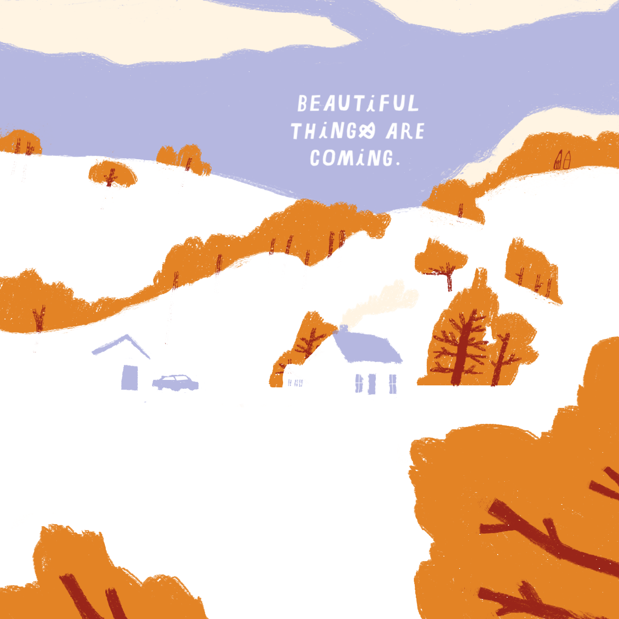 Affirmation to go by; the illustration is inspired by a still from the movie Hunt for The Wilderpeople by Taika Waititi.