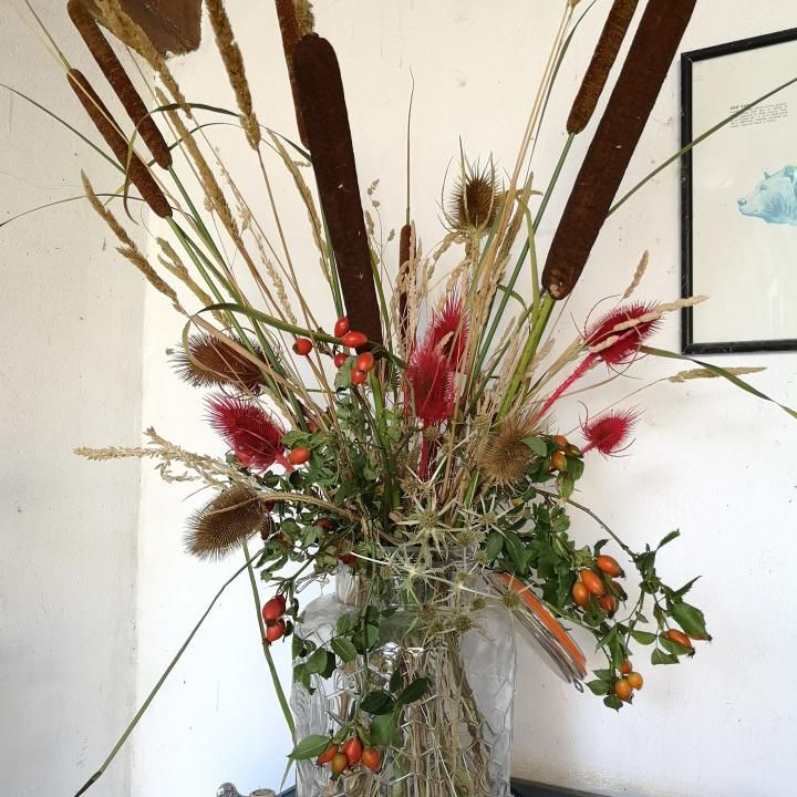 Merci Violeta pour vos cours. Avec eux, j'ai découvert un nouveau passe-temps qui me passionne. J'ai créé des dizaines de couronnes et réalisé des bouquets et des compositions florales avec beaucoup de matière que je collectionne, sèche ou conserve moi-même, et maintenant je m'encourage aussi à jouer avec la couleur. J'encourage tout le monde à expérimenter car c'est très satisfaisant d'essayer la variété de textures et d'effets qui peuvent être obtenus. Les salutations. Irène Tato