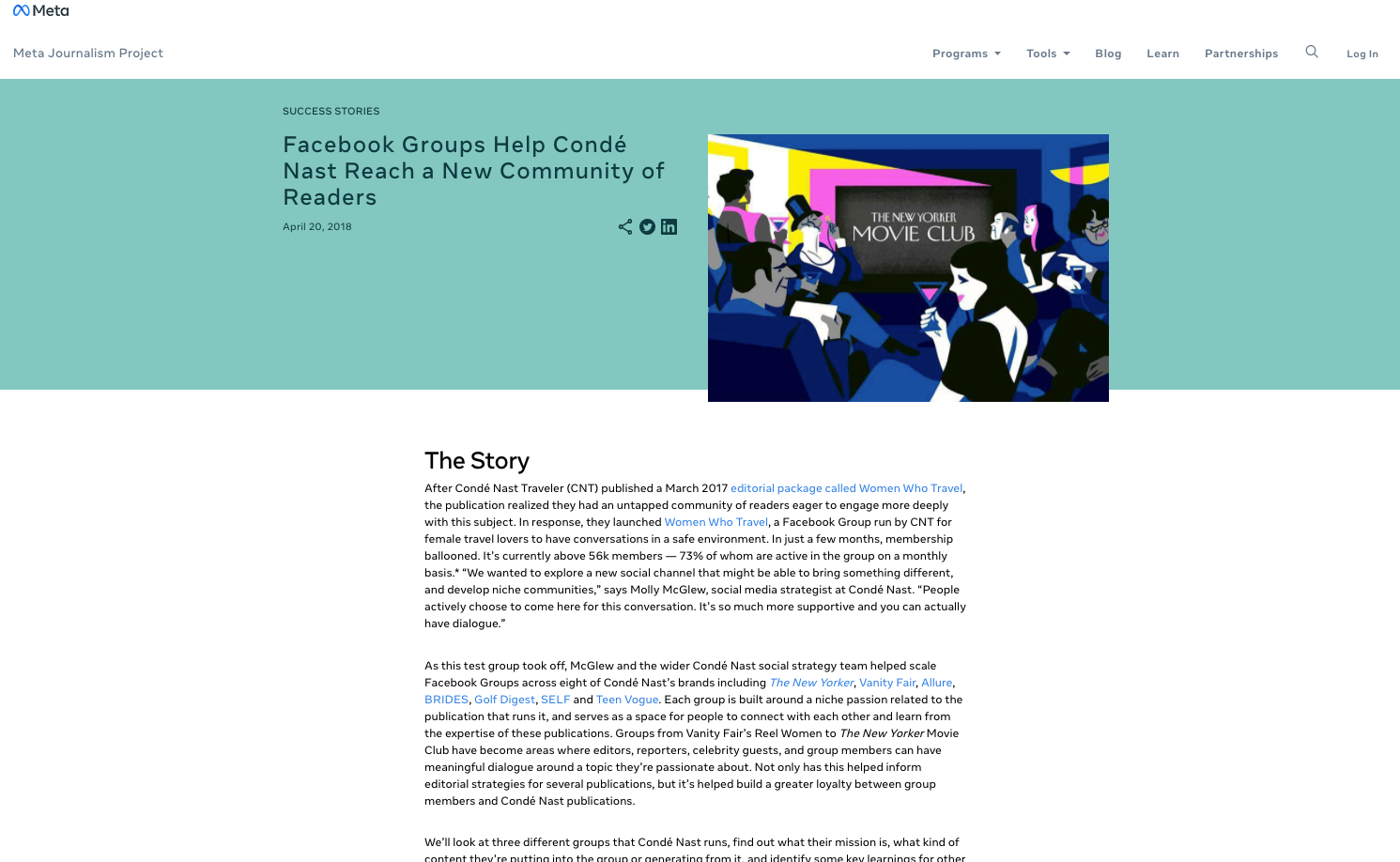 — See the full case study for this project on Facebook (now Meta's) publisher blog hee: https://www.facebook.com/journalismproject/conde-nast-facebook-groups