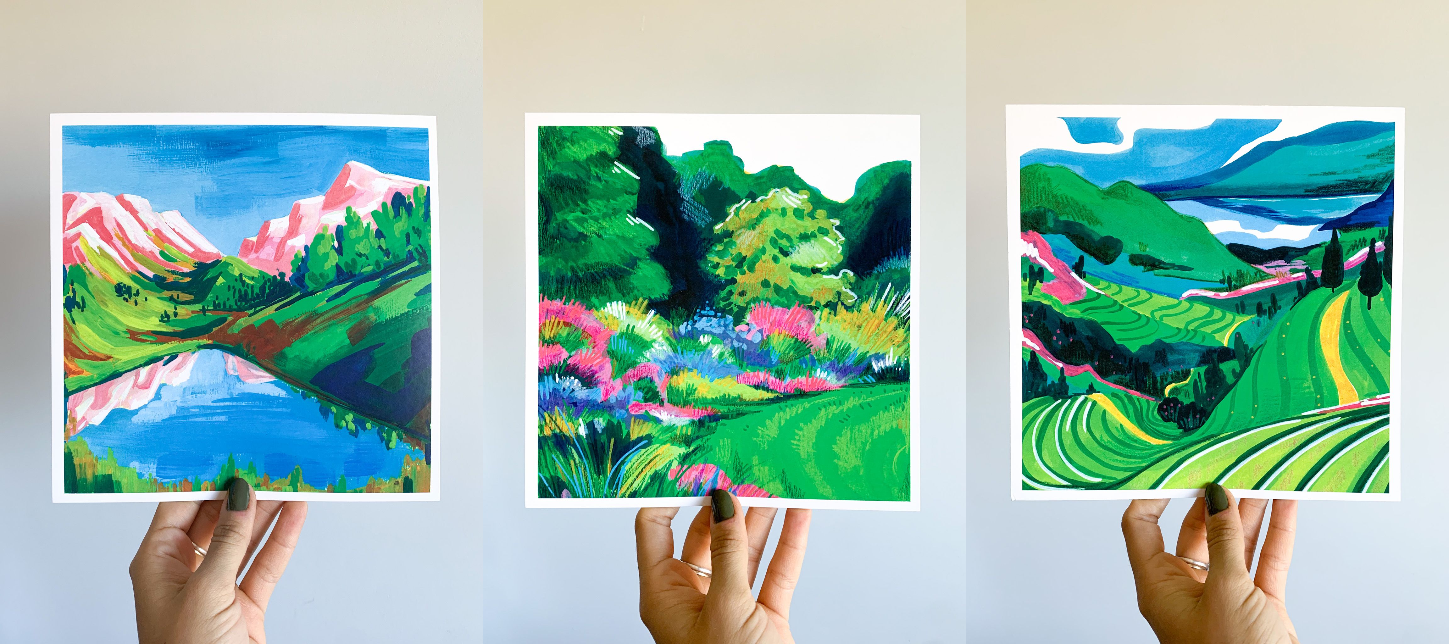 Collection of 3 mix media paitings that ended up becoming art prints in my shop <3