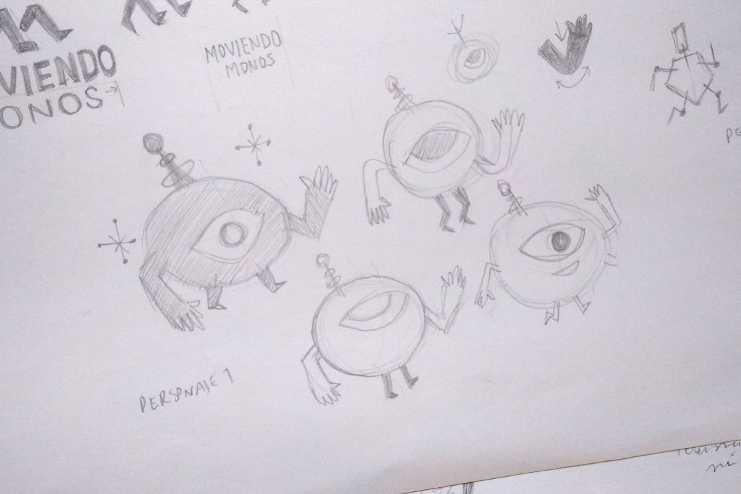 Durante el proceso de bocetaje, se retomaron algunas ideas como la proyección de luz que emite un cinematógrafo, las antenas y las ondas de energía que representan la creatividad o la experimentación.