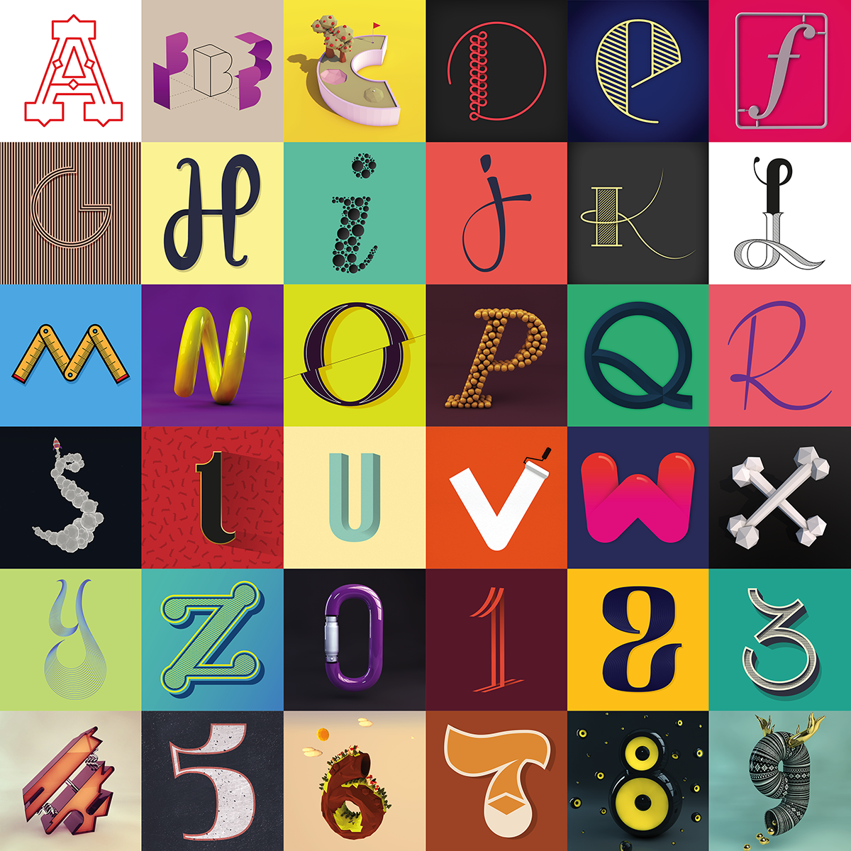 Muestra de mi aportación al proyecto colaborativo de 36days con un total de 26 letras y 10 números.